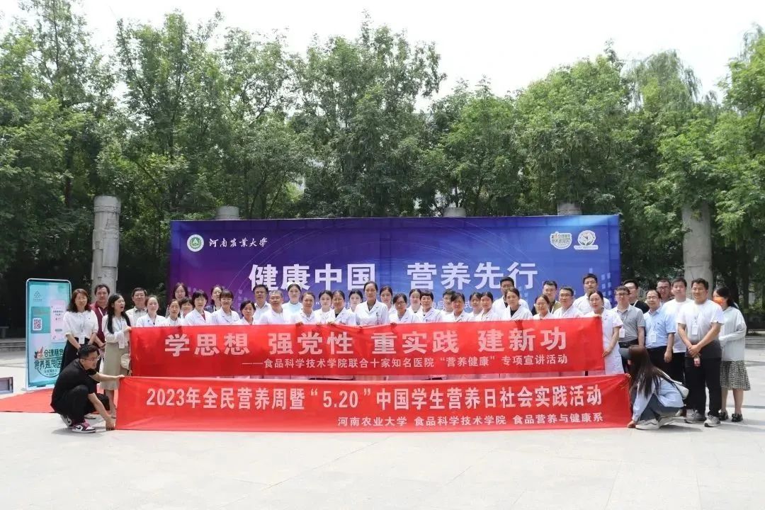 文化路校区成功举办“营养健康”社会实践专项行动启动仪式暨第一届“营养知识健康行”活动系列活动。校党委学工部部长徐峰、校团委书记贾云飞、校党委学工部副部长张二龙,河南省科学技术协会科普部孔德杰部长、院党委书记赵改名、院党委副书记李蓓蓓、副院长谢新华出席本次活动,郑州人民医院等10家医院和学校师生共计千余人参加本次活动。