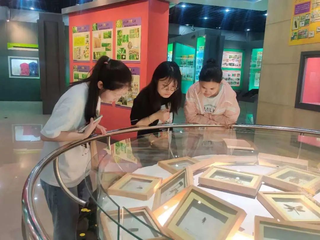 毕业生党员们跟随校史馆工作人员上二楼参观了标本馆和档案馆,馆内陈列了姿态各异的鸟类,它们或是展翅高飞,或是驻足深思,仿佛在诉说着它们生前的骄傲,也有数百只色彩绚丽的蝴蝶被有序地固定在墙壁上。大家惊叹不已,对自然和生命有了更深刻的认知。