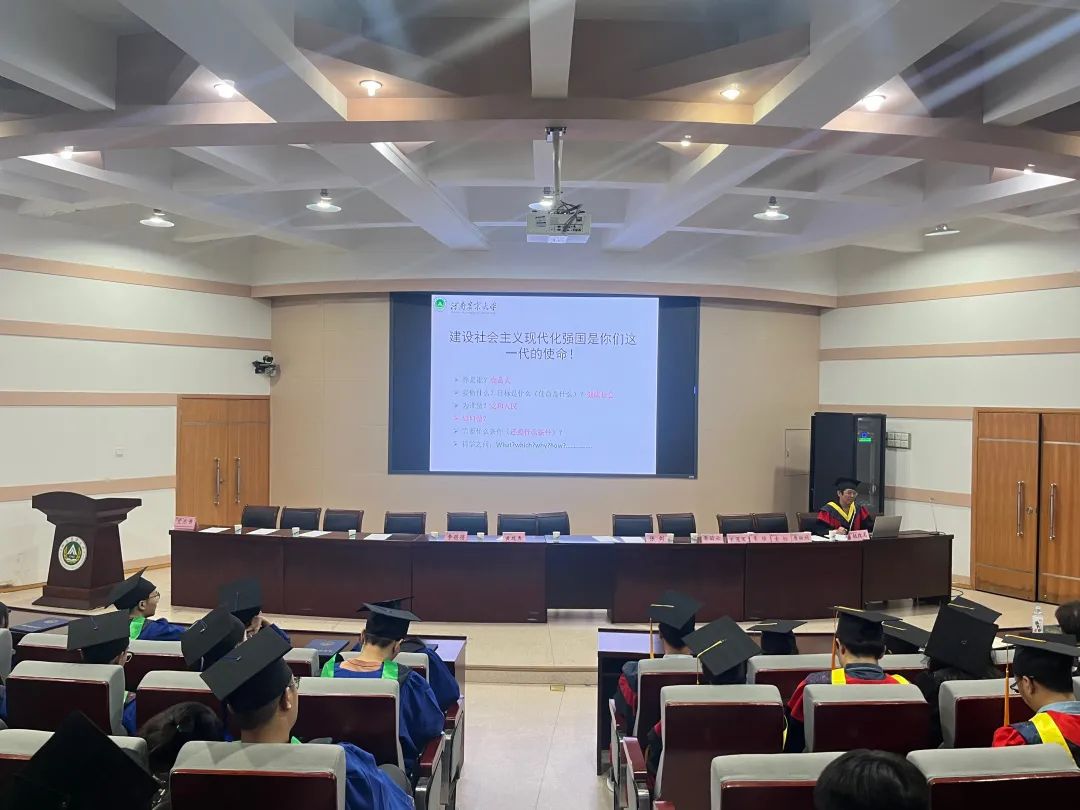 赵改名对2023届毕业生顺利毕业表示热烈祝贺,带领同学们重温了习近平新时代中国特色社会主义思想,结合党的二十大会议精神,以“人生三问”为切入点,结合亚洲色吧