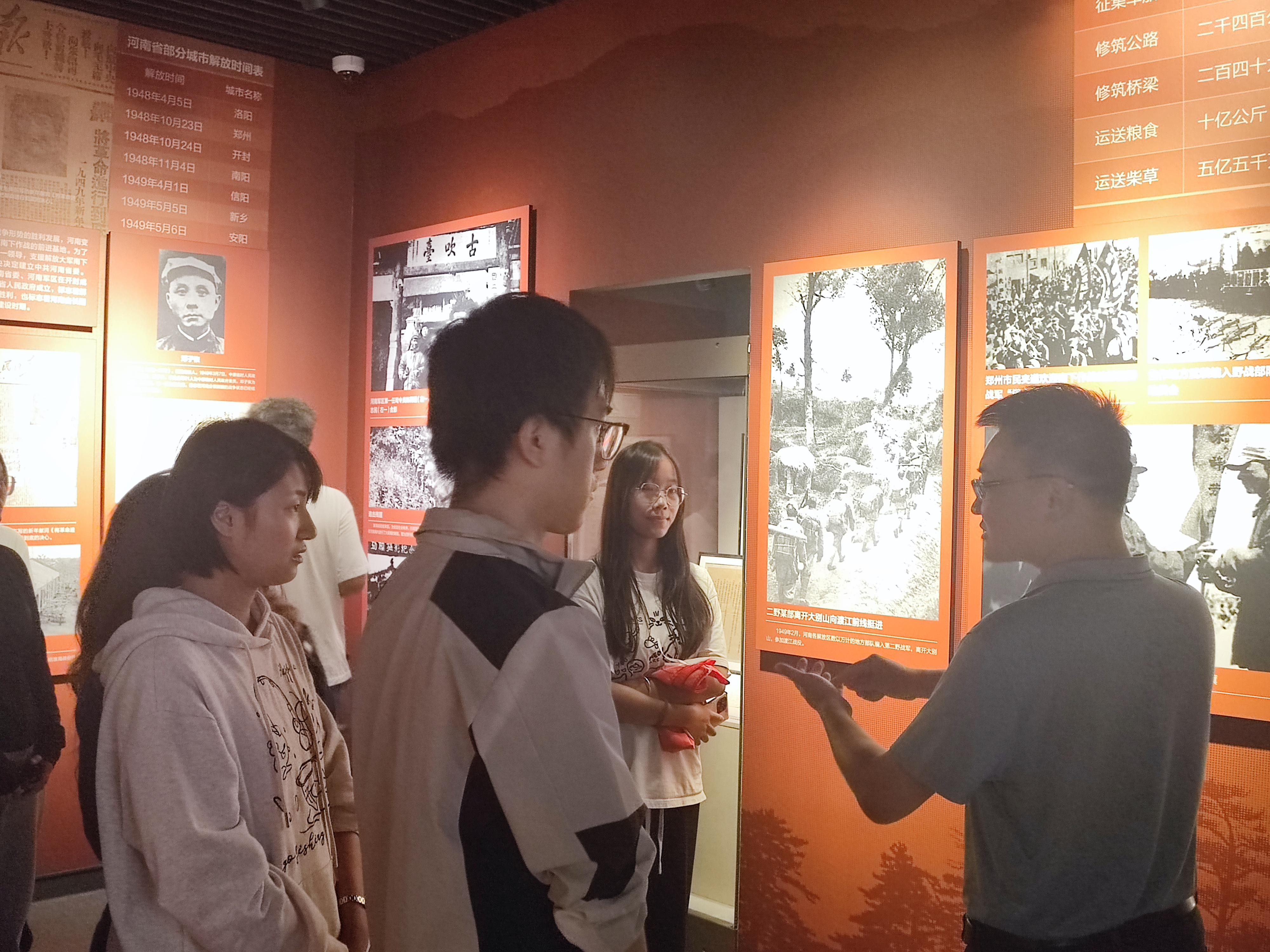 在博物院内,党员们分组进行宣讲,向参观者详细介绍了河南的红色历史和文化陈列。党员们与参观者进行了互动交流,解答了他们的问题。通过宣讲,有效传播了河南的红色文化和中原文明,提升了公众对河南历史文化的认识,同时党员们也在宣讲中锻炼了自己的表达能力和沟通技巧,增强了自身的社会实践能力。