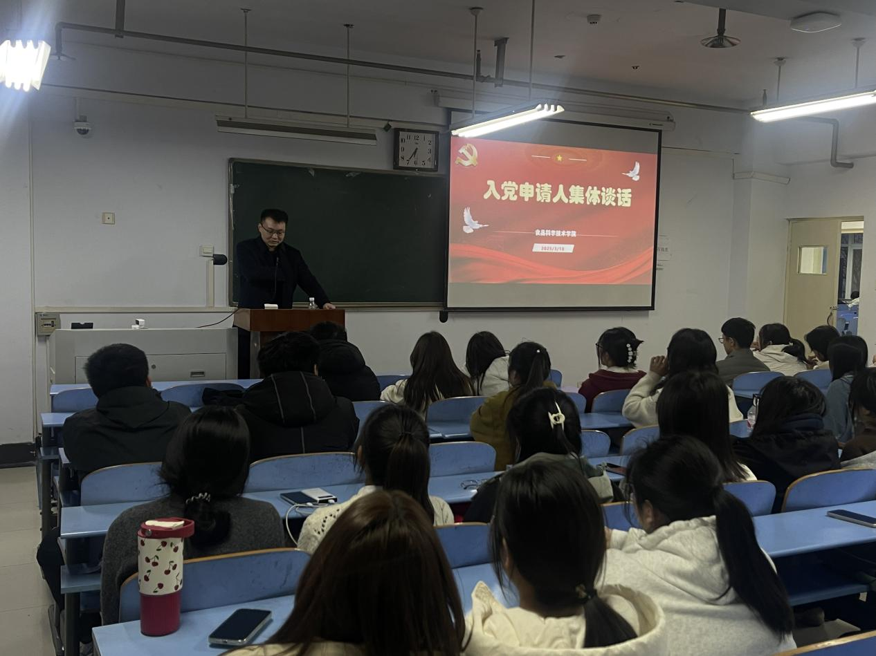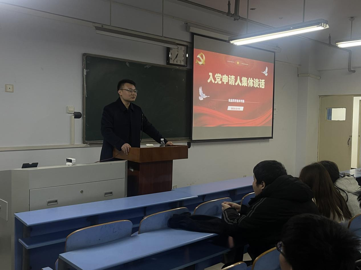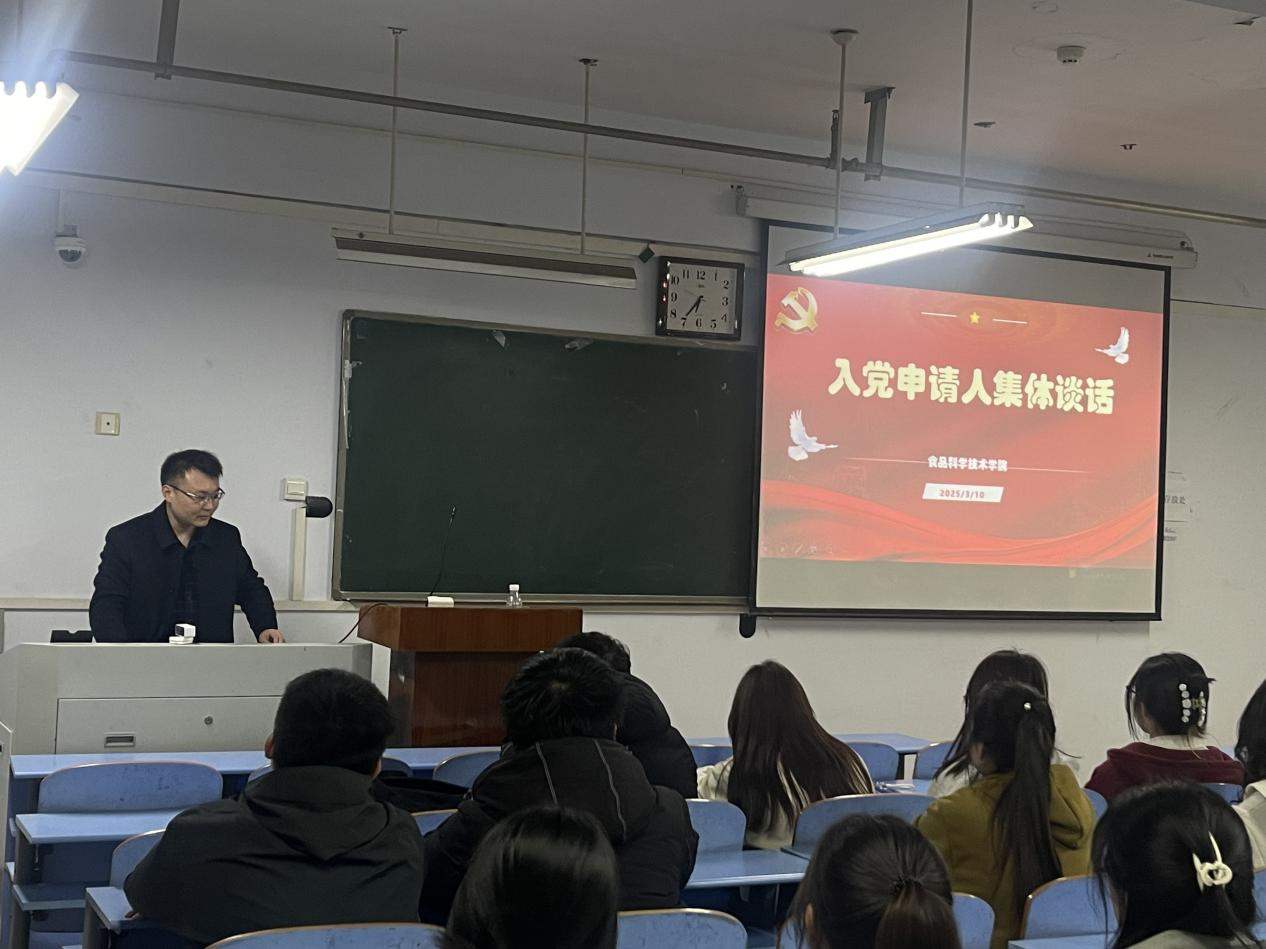 党委组织员陈翔在推广楼406教室为入党申请人举办了一场集体谈话活动。此次谈话聚焦如何成为一名合格的入党积极分子,助力入党申请人明确努力方向。