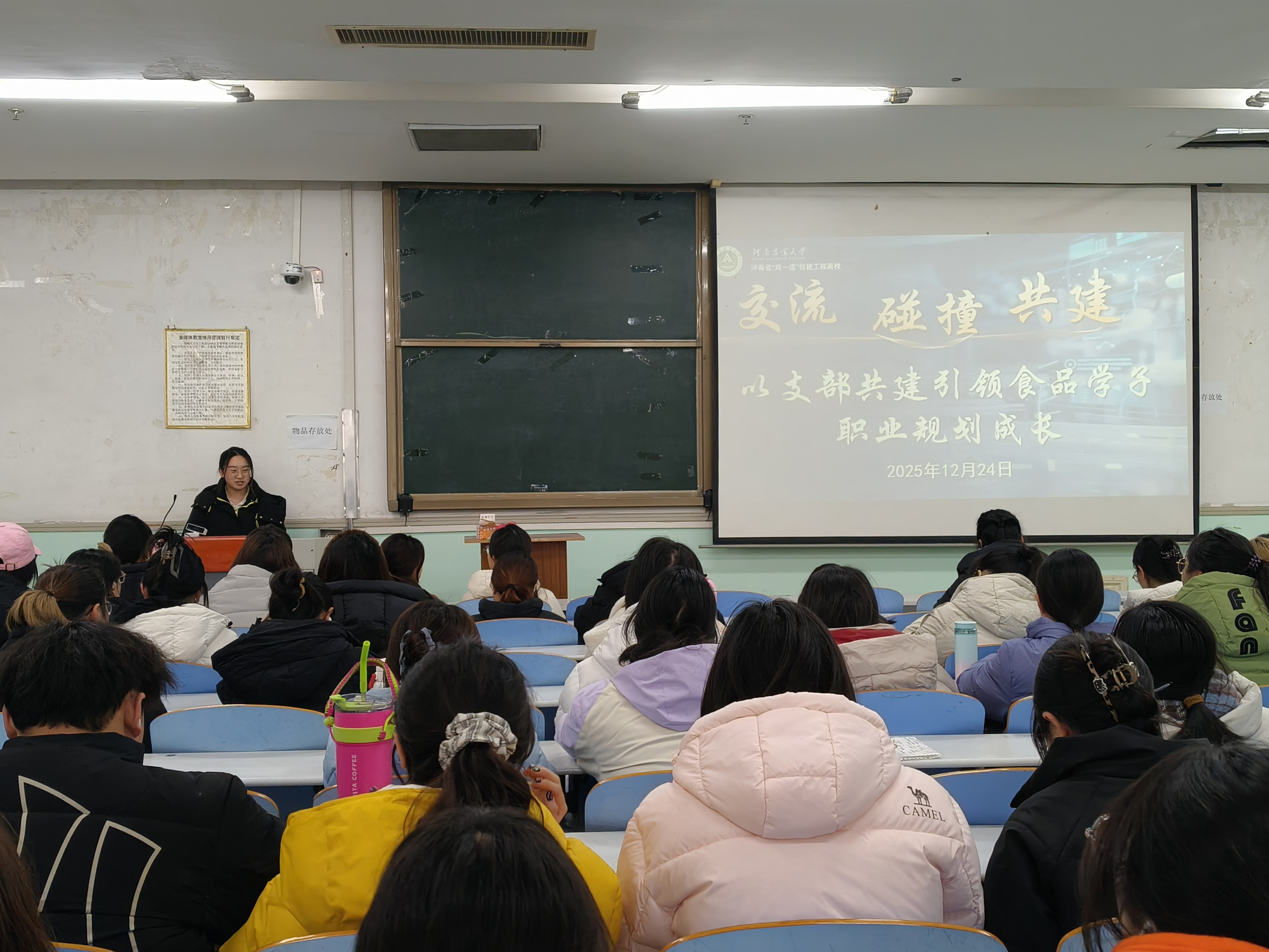 活动中,食安专业学生党支部党员刘思含围绕食品专业职业发展路径并结合自身经历分享经验,讲解职业规划方法。食工专业学生党支部党员韩钦晴指出职业规划要与自身、学校与国家发展相结合,阐述了食品行业的未来发展趋势并对职业发展中的痛点给出解决方案。营养专业学生党支部党员马静怡聚焦“职业规划大赛”,从赛道选择、PPT逻辑架构到路演表达技巧逐一拆解,帮助同学们把职业蓝图“讲清、讲透、讲出彩”。营养专业学生党支部党员党员周凯轩围绕研究生推免全流程,逐一分享推免材料打磨、面试问答、志愿填报等关键节点,为意向升学的同学送上“避坑指南”。