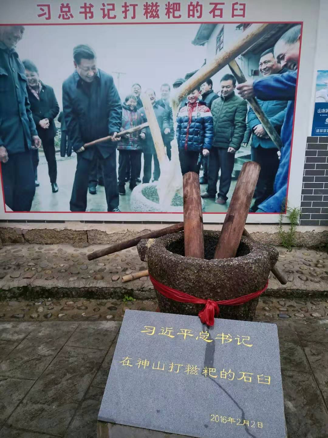 2016年2月2日,恰逢农历小年,习近平总书记来到神山村,看望慰问贫困户、烈士后代,与当地村民一起打糍粑,互致新春祝福。