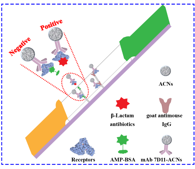 食品质量与安全系张西亚副教授带领刘万京、马如想等本科生针对牛奶中β-内酰胺残留检测困难这一技术问题展开大量研究,最终以青霉素受体作为生物识别元件,筛选抗青霉素受体的单克隆抗体,该单克隆抗体与青霉素受体蛋白结合位点远离青霉素受体蛋白的活性位点,以新型标记物不规则碳纳米粒子和胶体金探针标记该单克隆抗体,经过抗原抗体特异性结合反应,实现了间接无损标记,保留了青霉素受体蛋白的活性,根据间接竞争反应模式,构建了侧流层析传感器,可以检测牛奶中22种β内酰胺类药物,检测限均低于最大残留限量,为牛奶中β内酰胺残留快速检测提供了新技术,应用前景广泛。该研究发表在Sensors and Actuators B: Chemical国际知名期刊上,此外,该产品已经初步应用于生产企业,带来了一定的经济效益。