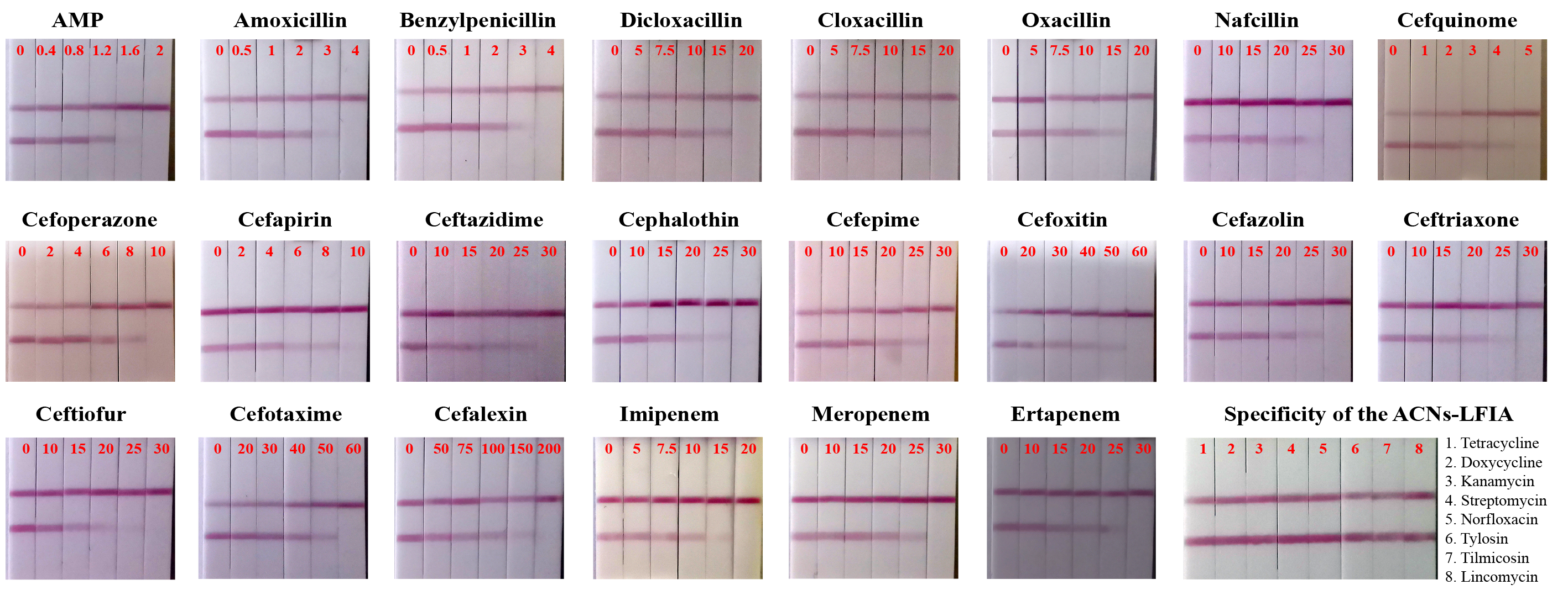 牛奶中22种β-内酰胺药物检测胶体碳试纸条