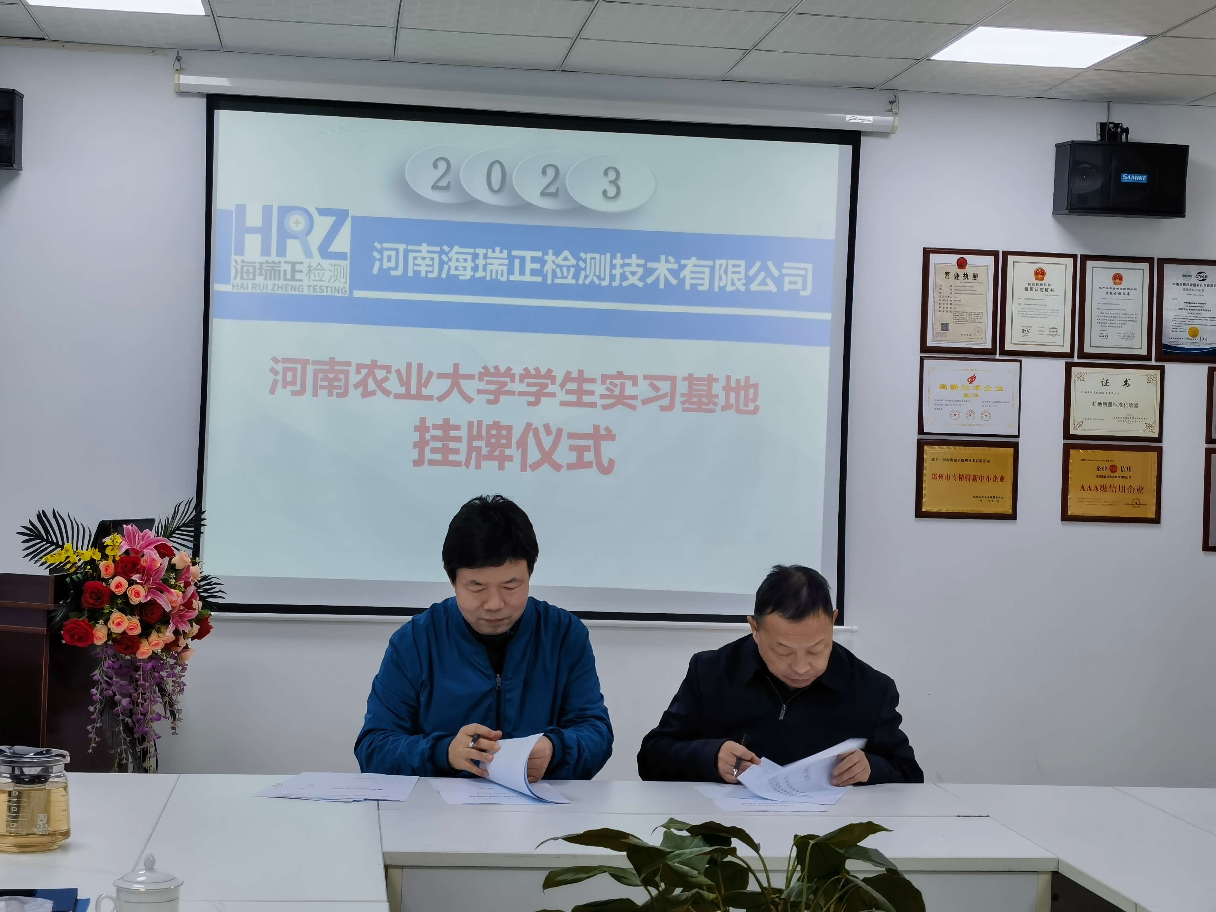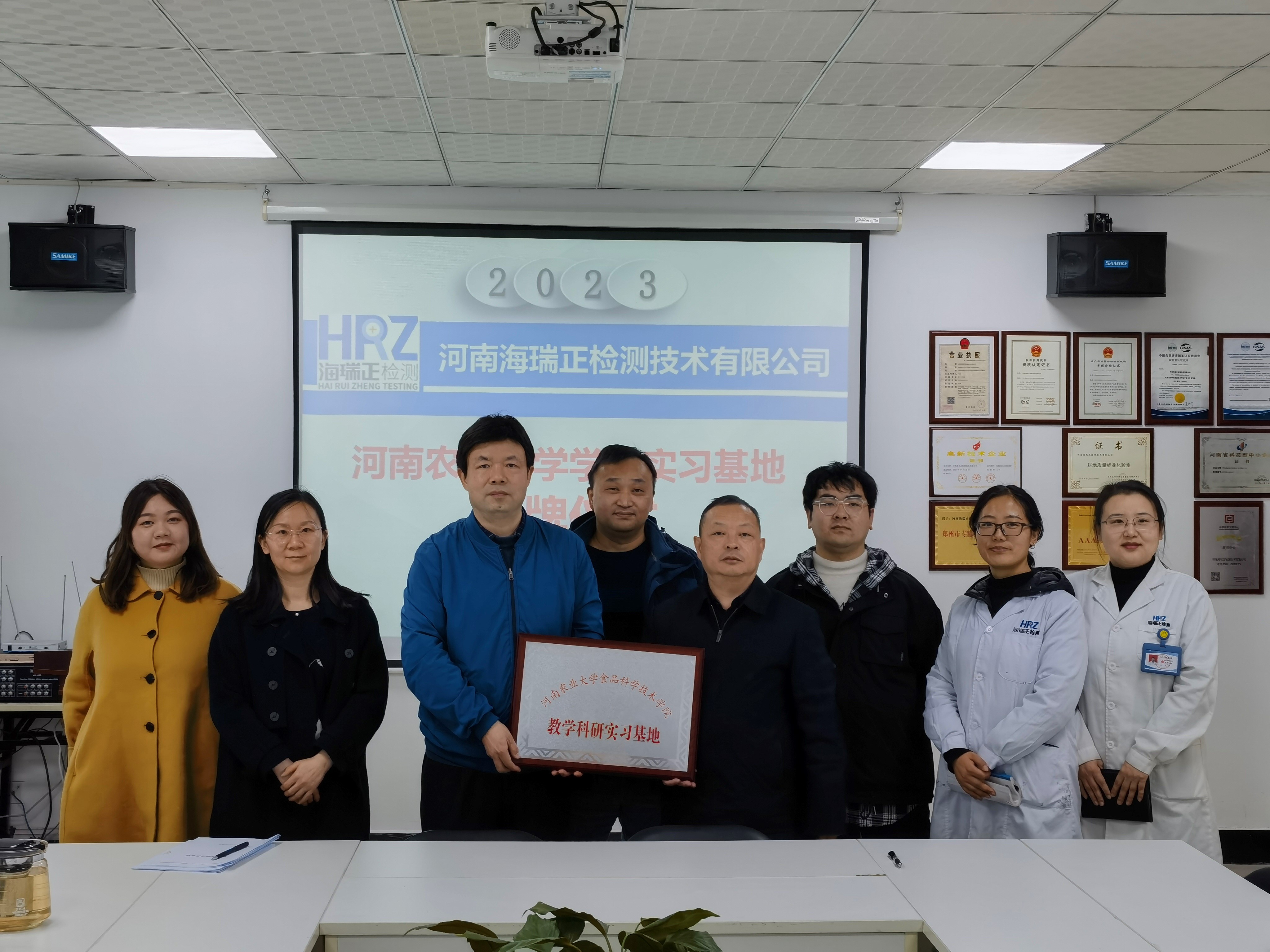 、河南海瑞正检测技术有限公司共建教学科研实习基地授牌仪式在河南海瑞正检测技术有限公司举行。海瑞正检测技术有限公司董事长兰尊海、副总经理兰剑、副总经理李贤、检测中心主任赵景丽、人事部负责人张向辉等及亚洲色吧