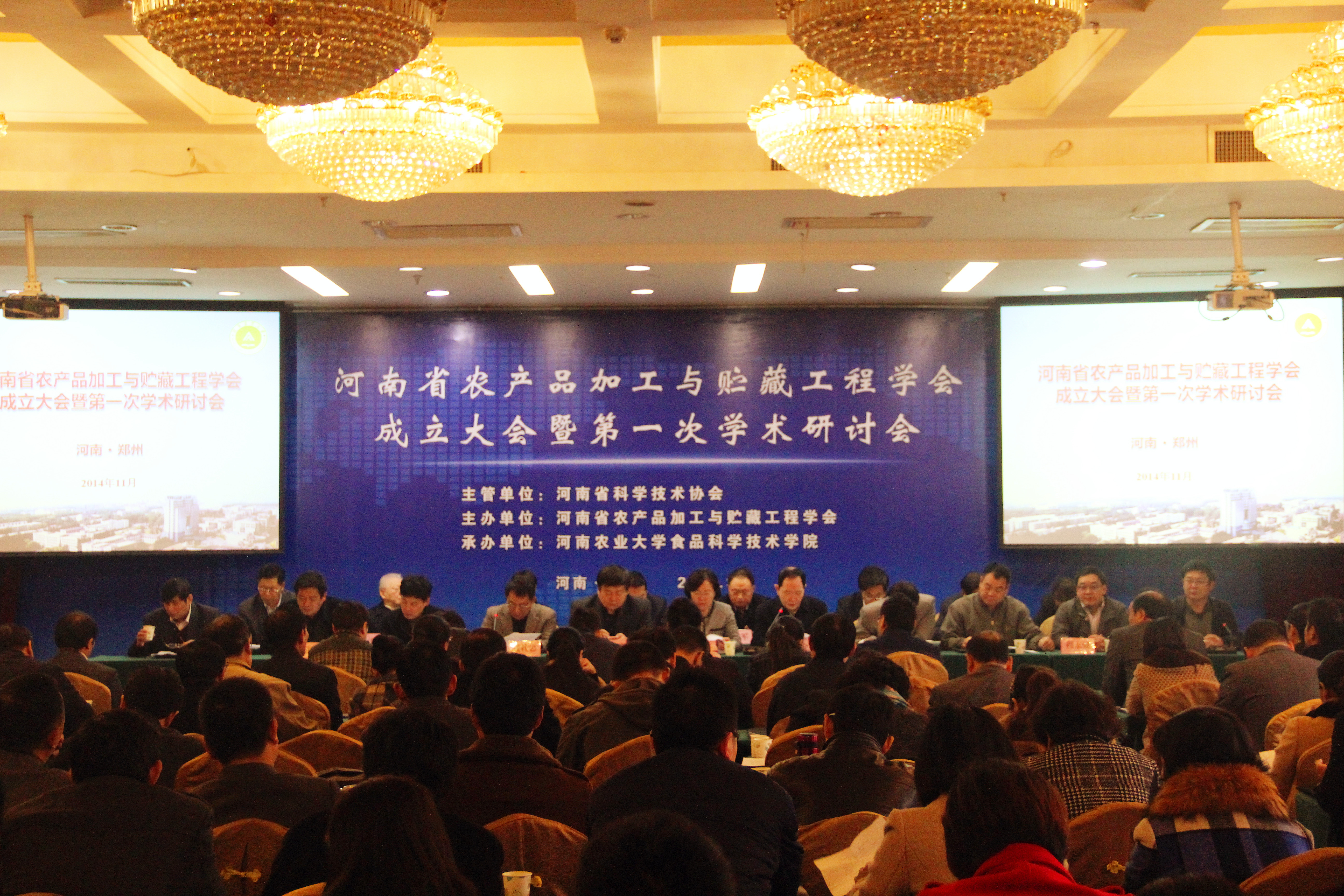 大会围绕河南省农产品加工与贮藏工程学会成立的主议题,审议通过了学会的章程,投票选举产生了学会理事长1名,学会常务副理事长1人,学会副理事长15人,学会秘书长1人,学会常务理事53名,理事114名。学会第一届常务理事会议讨论设立了学会的十二个专业委员会,选举产生了各专业委员会的主任人选,确定了学会每年一次的学术研讨会及常务理事会议。与会专家学者、企业家和河南省食品农产品加工监管部门领导在会上做了精彩纷呈的学术报告,报告内容涉及农业及农产品产业发展趋势,食品农产品质量与安全,农产品加工新技术和食品企业发展及科企合作多个领域。