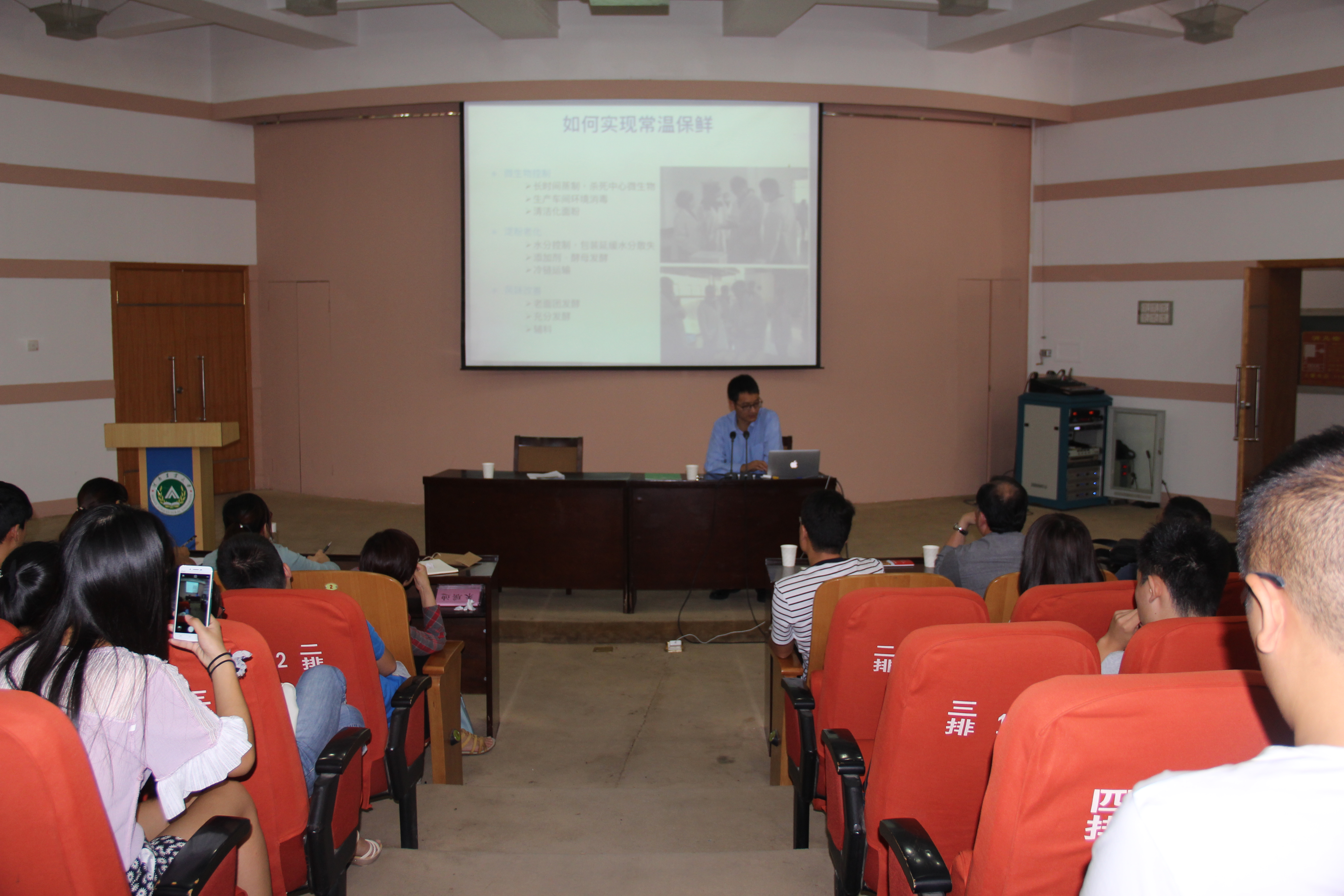 9月23日上午,陕西师范大学食品科学与营养工程学院副院长胡新中教授在文化路校区三百人报告厅为亚洲色吧 师生作了题为“中国传统面制食品常温保鲜的理论与实践” 的学术报告。学院院长赵改名主持报告会,学院相关专业老师和同学参加并聆听了此次报告会。