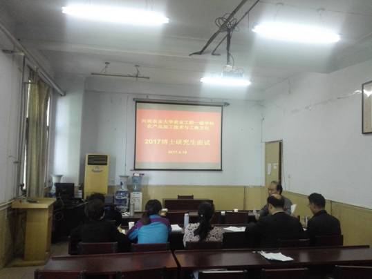 农业工程一级学科农产品加工技术与工程方向博士点面试工作在文化路校区1号楼121举行,对初选合格的4名申请者进行面试及英语水平考核。