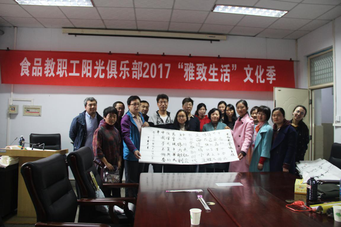 在文化路校区17号楼405会议室成功举办食品教职工阳光俱乐部2017“雅致生活”文化季活动。河南省书法家协会会员茹光明老师亲临指导,学院教职工在繁忙的工作之余积极参加了此次活动。