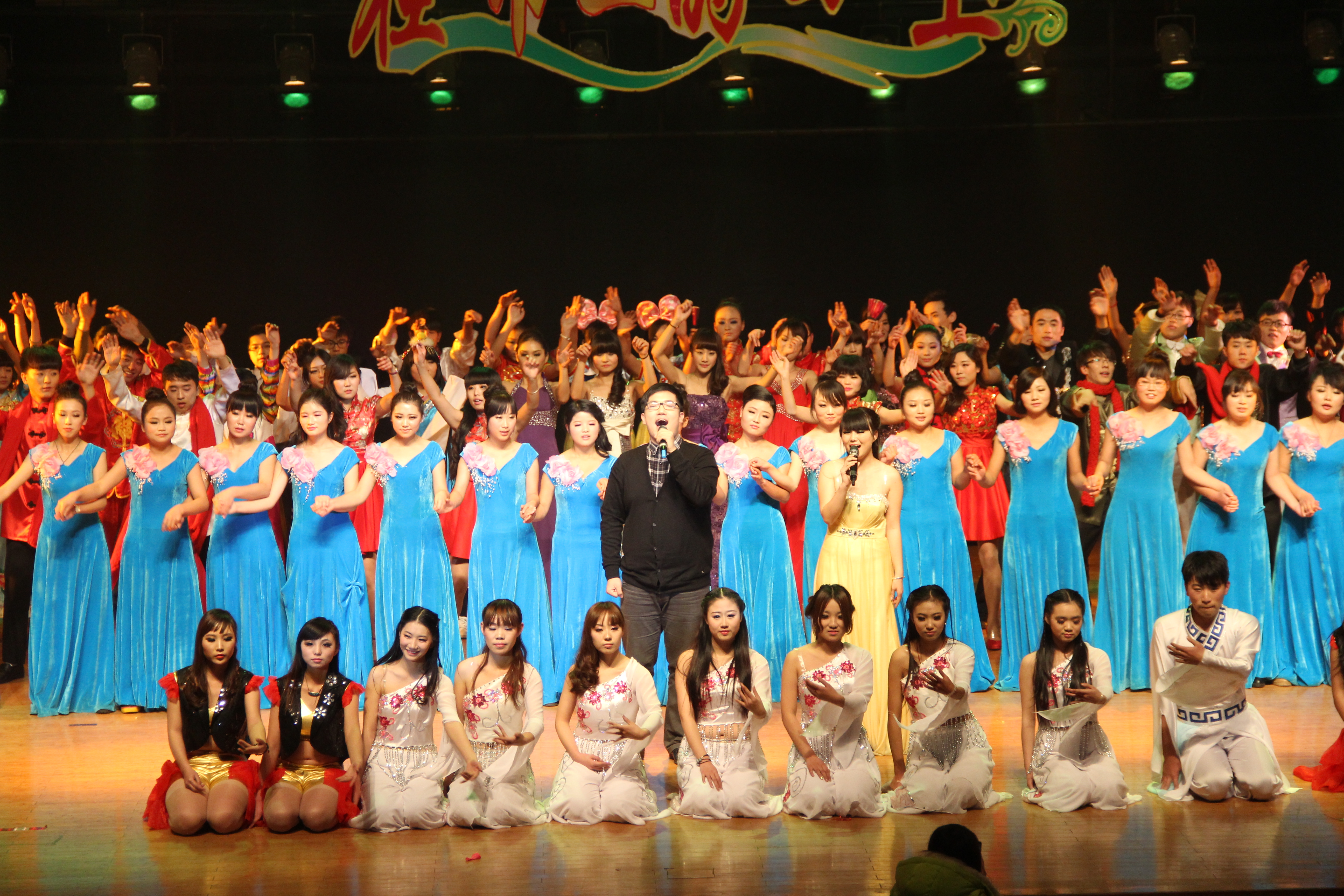 12月18日晚,亚洲色吧 2014年“在希望的田野上”元旦文艺晚会在校大礼堂精彩上演。校工会主席褚金海、学生处、研工部、校团委、兄弟院系相关负责人、学院领导班子和学院教职工生共1200余人观看了本次演出。晚会历时三个小时,现场掌声雷动、气氛活跃、异彩纷呈,师生们其乐融融。