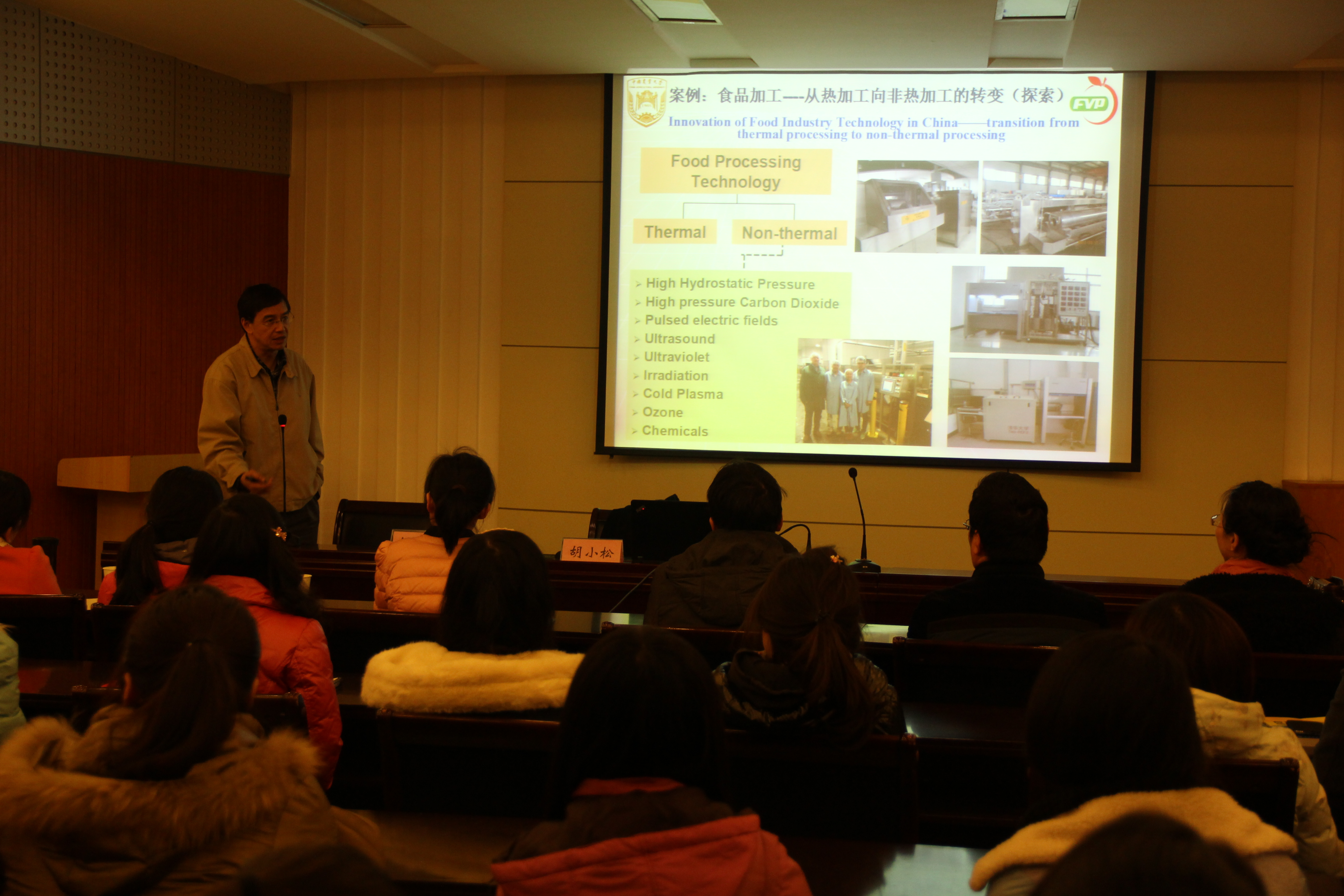 报告会上,胡小松教授主要从中国食品产业发展面临的压力,中国食品产业发展经历的阶段,中国食品产业发展关注的科学问题和中国食品产业科技创新的问题四个方面为大家作报告。报告中,胡小松教授通过数据资料、案例分析等方式向我们详细的介绍了中国食品产业发展的现状、科技创新中存在的问题等。其中,就中式菜肴工业化、标准化的问题,胡教授强调了科学技术在“传古风,留美味,兴中华”中发挥的关键作用,食品专业领域的师生应不断提高专业技能,为食品工业的现代化作出切实有力的贡献。胡小松教授讲话幽默风趣,深入浅出,此次报告会不仅让广大师生对我国食品产业发展有了一个更为准确的把握,还拓宽了师生们对我国食品产业发展与创新的视野,受到了师生们的一致好评。(袁乾乾)