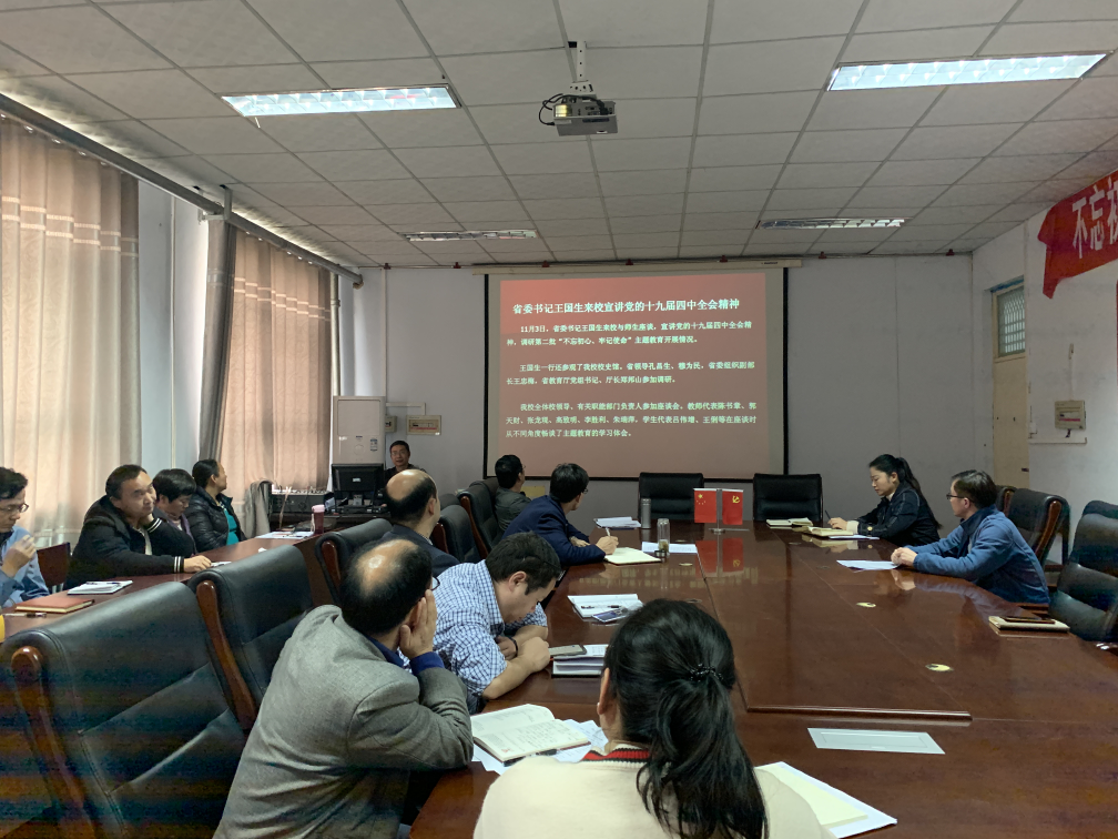 11月5日,亚洲色吧 组织召开学习党的十九届四中全会精神和省委书记王国生书记座谈会讲话精神会议,学院全体教职工参加,院党委书记杨喜洲主持会议。