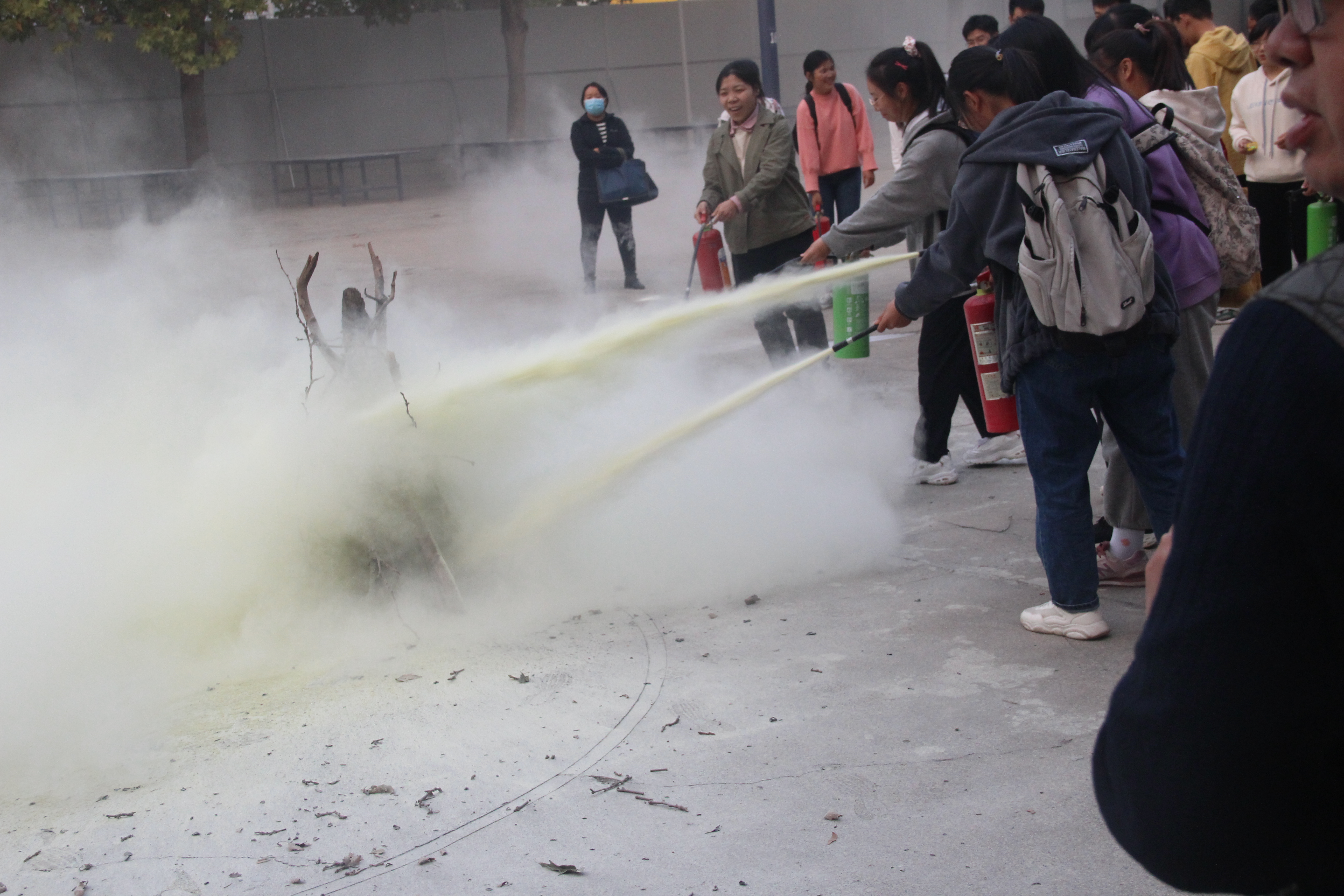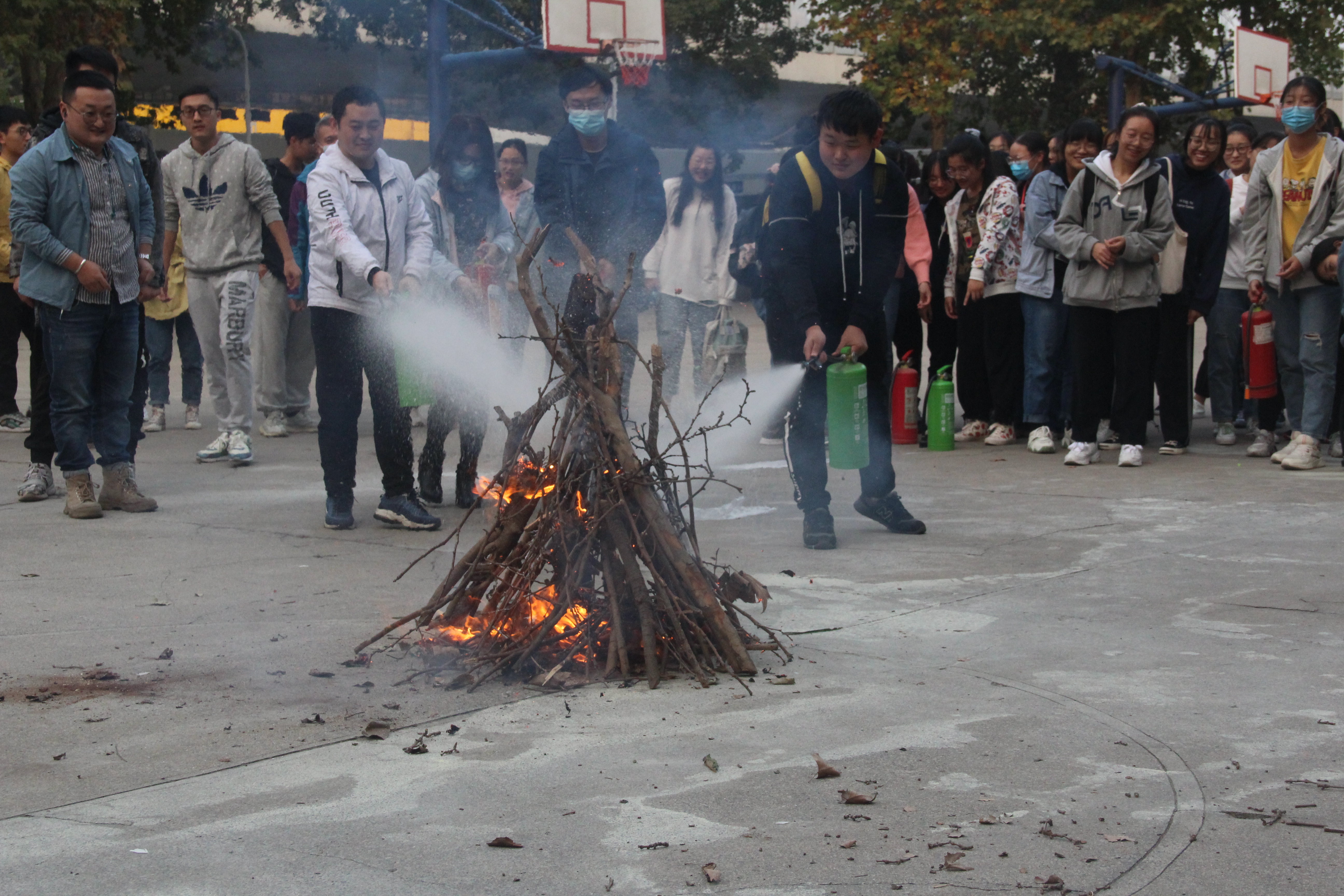 在7号楼东侧操场举办消防演练及灭火知识讲座,学院副院长谢新华及教职工生代表100多人参加了演练。