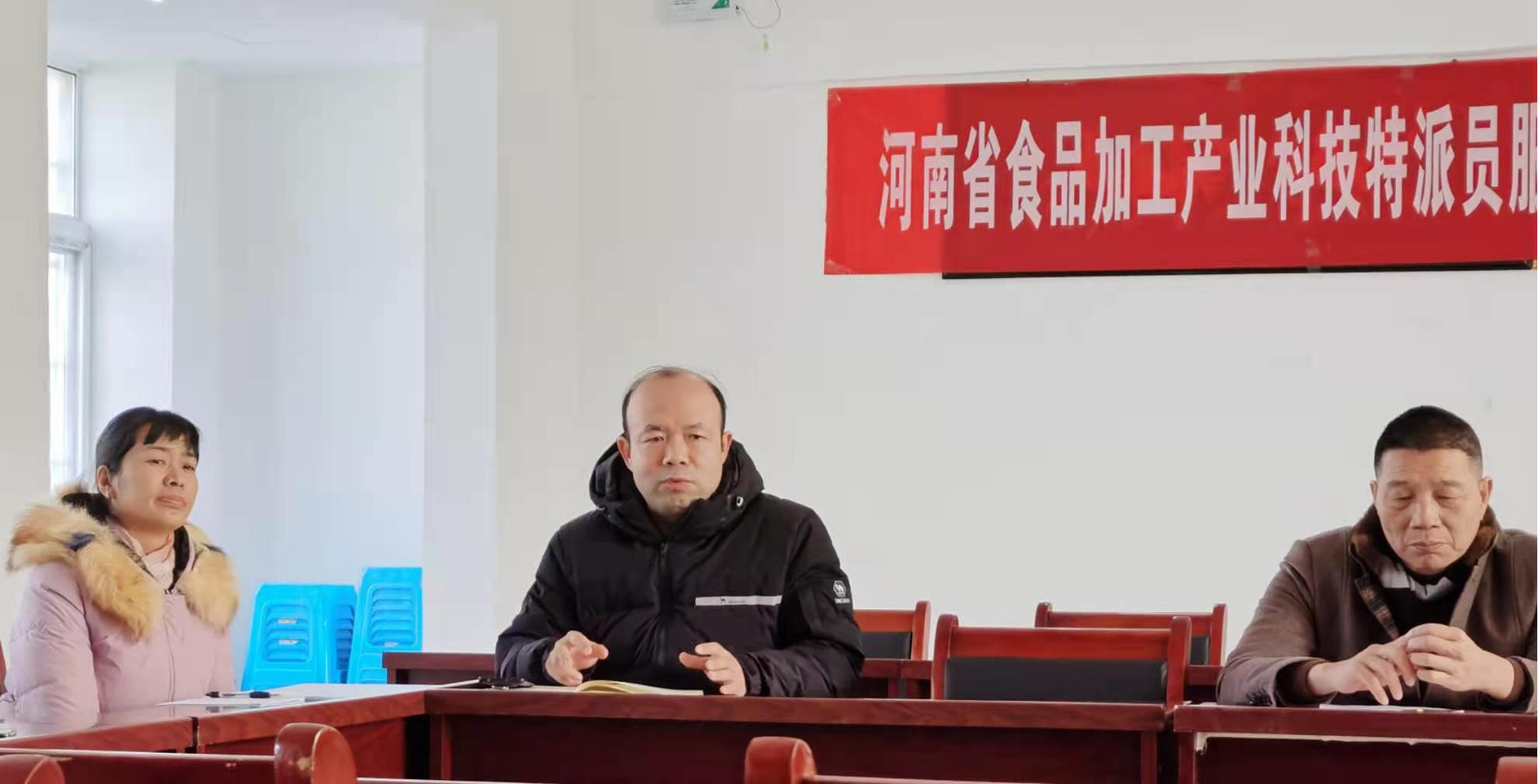 科创孵化基地的成立会议于12月4日在河南省膳食纤维饼干研制工程技术研究中心(旷华食品的研发中心)举行,会议由李保平主任主持。李梦琴教授首先介绍了孵化基地建立的意义。通过建立孵化基地,充分发挥“河南省膳食纤维饼干研制工程技术研究中心”的优势,使当地食品企业串联成珠,结合服务团的技术优势,形成“产学研”一体化发展的良好模式,用科技为企业赋能助力,促进上蔡县食品产业高质量发展。
