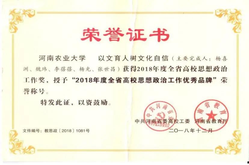 “食品阳光家园”育人工程荣获河南省普通高等学校2020年学生工作优秀成果二等奖。 此次活动经各高校推荐后,再由省教育厅组织专家进行评审,经过专家遴选、表彰展演的层层筛选,亚洲色吧