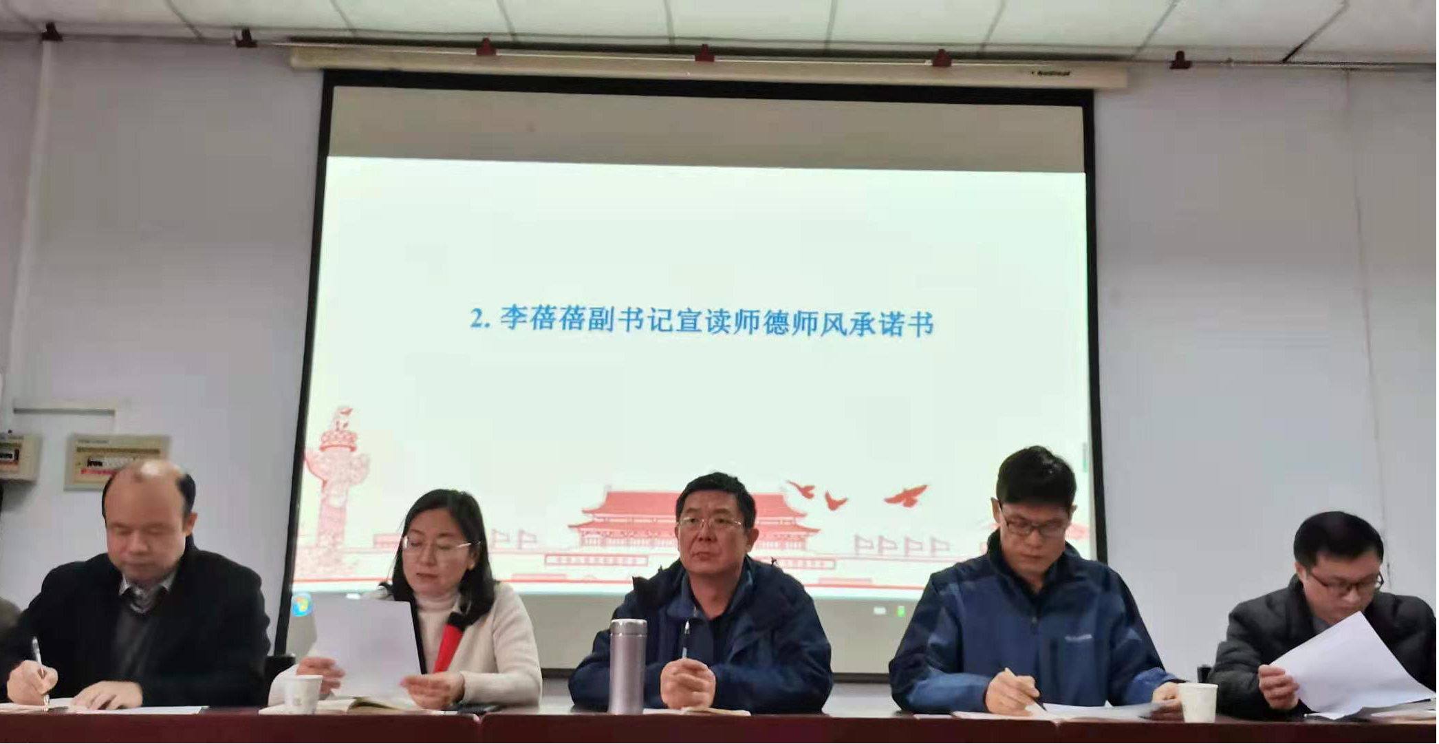 最后,院党委书记赵改名作师德师风报告,强调教师基本素质培养的必要性,并从教师的基本素质要求与规则意识、文化传承规则与教书育人义务、科学研究与学术规则、规则与创新的对立统一、坚决抵制与抨击潜规则等方面进行了探讨。老师们认真聆听,深受启发,纷纷表示要在今后的工作当中认真遵守师德师风,争当“四有”好老师。