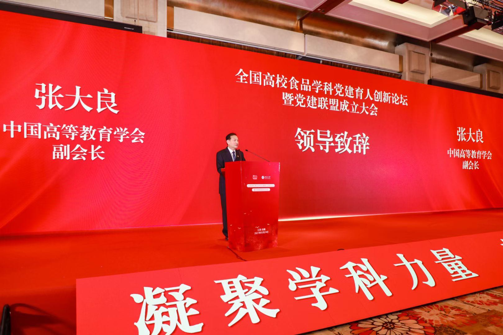 党建联盟成立大会上,中国高等教育学会副会长张大良、江南大学党委书记朱庆葆、教育部高等学校食品科学与工程类专业教学指导委员会主任金征宇等领导出席大会并致辞。