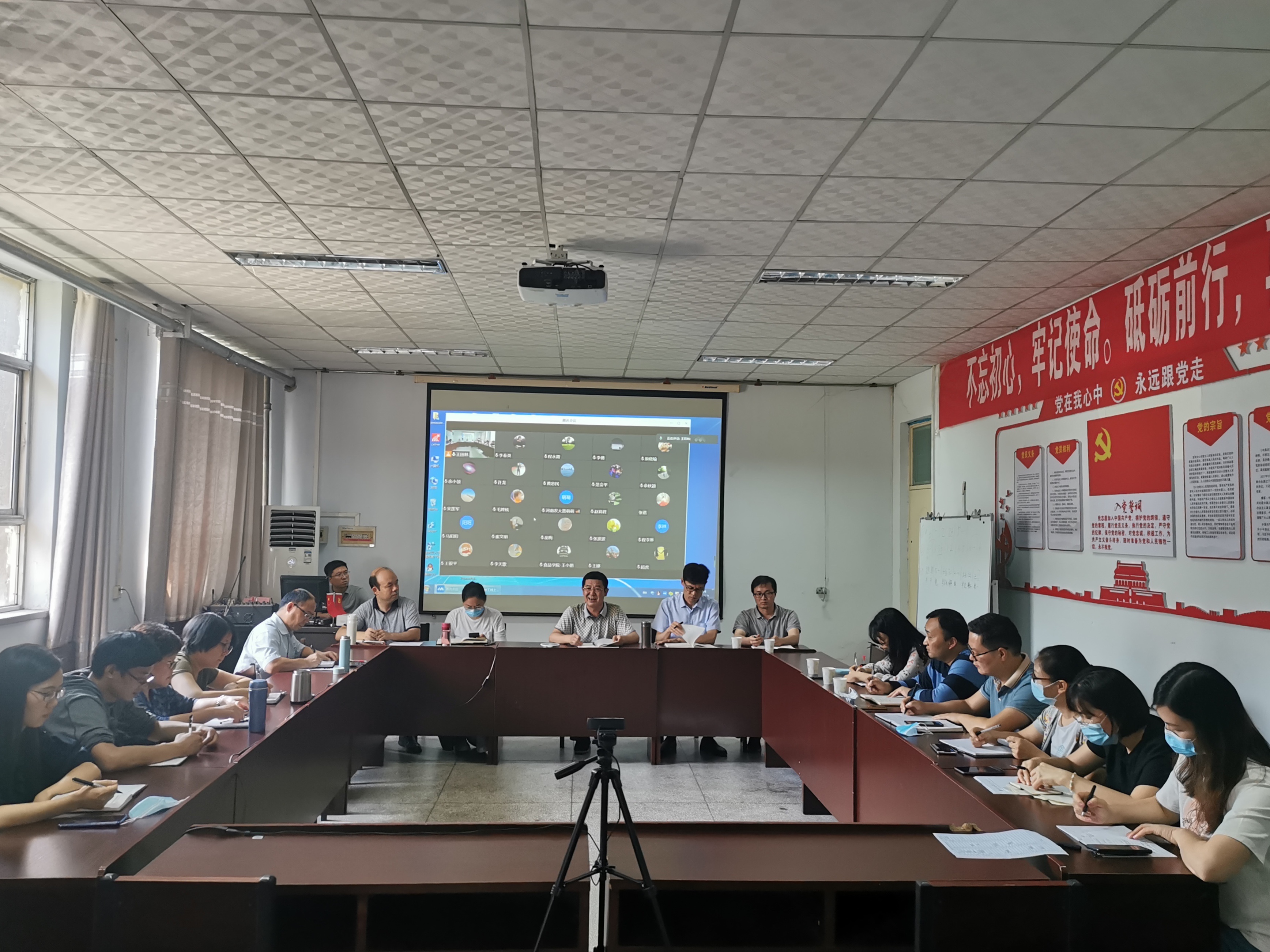 召开秋季学期开学教职工大会,会议采用线下线上相结合的模式。赵改名书记首先介绍了目前全国以及郑州疫情防控的形势,肯定了学院教职工生在水灾和抗疫工作的做出的贡献,并对于下学期的整体工作进行安排,指出由于暑假期间的郑州水灾和疫情影响了本学期的正常开学秩序,首先采用线上教学的模式进行课程学习,所有教职工需要做好线上教学的充分准备。黄现青院长强调了虽然是线上教学,但所有教职工要按时到岗,认真开展相关教学科研工作。黄院长对上学年的科研项目申报情况进行总结,鼓励青年教师积极申报。此外,黄院长还对于本学期人才引进工作、教学评估工作、创新团队备案等问题进行了详细的规划。黄院长鼓励各位教职工要多思考工作中的重点、难点、热点,要谨记“谋事预则立、处事有策略、遇事迎难上、做事要结果”。李蓓蓓副书记主要安排了党建工作中的党史学习任务,汇报了学院毕业生的就业情况。谢新华副院长总结了假期期间的防疫工作,指出所有教职工和学生均能够按时健康上报并遵守离郑请假规定,并对于水灾造成的实验室安全相关问题作出详细的汇报。张剑副院长对教学相关内容进行部署和安排,强调了要遵循OBE理念,所有课程按认证要求做好科学规划;对于新生要做上课引导,如利用视频会议介绍网课流程等。