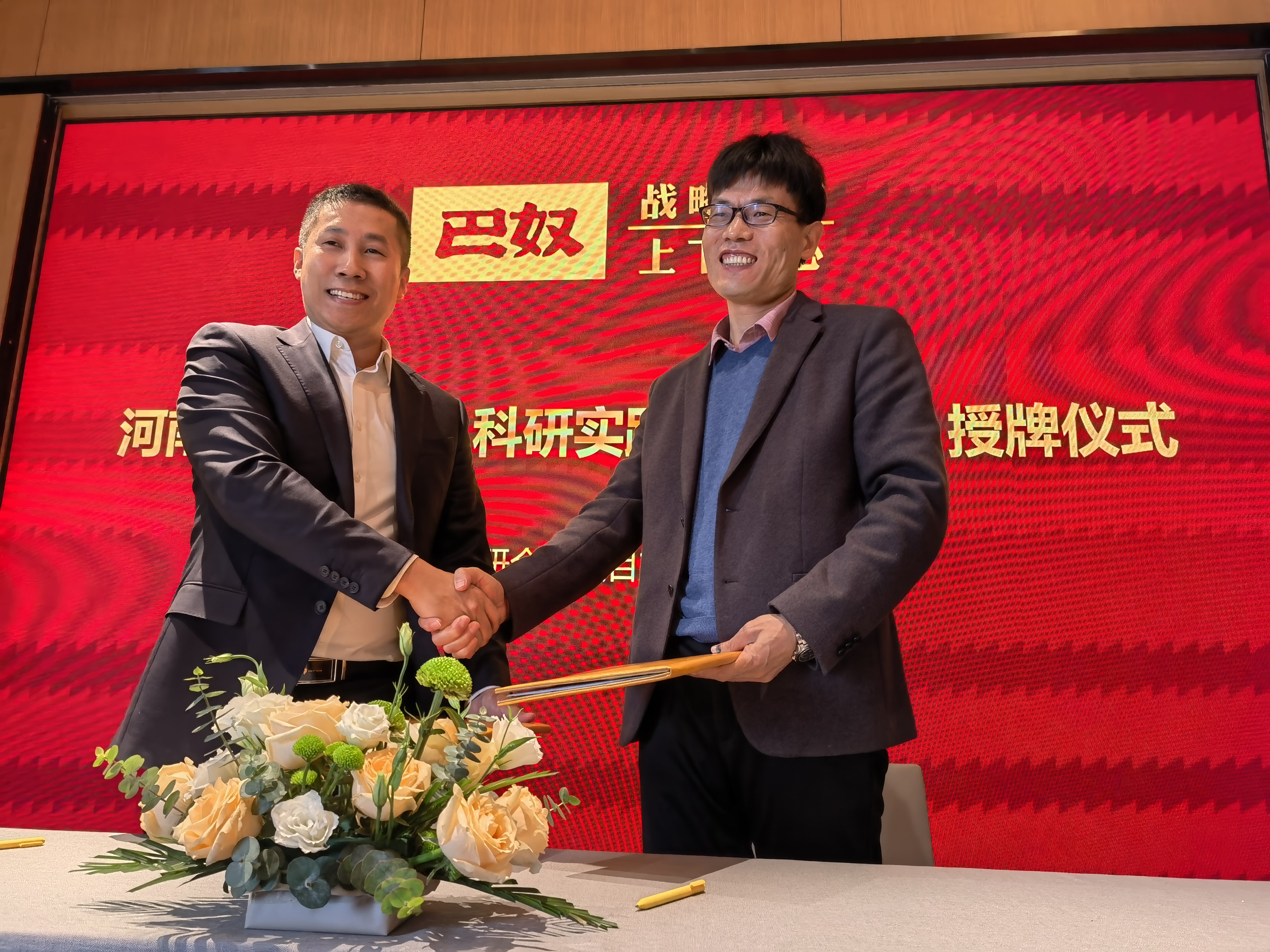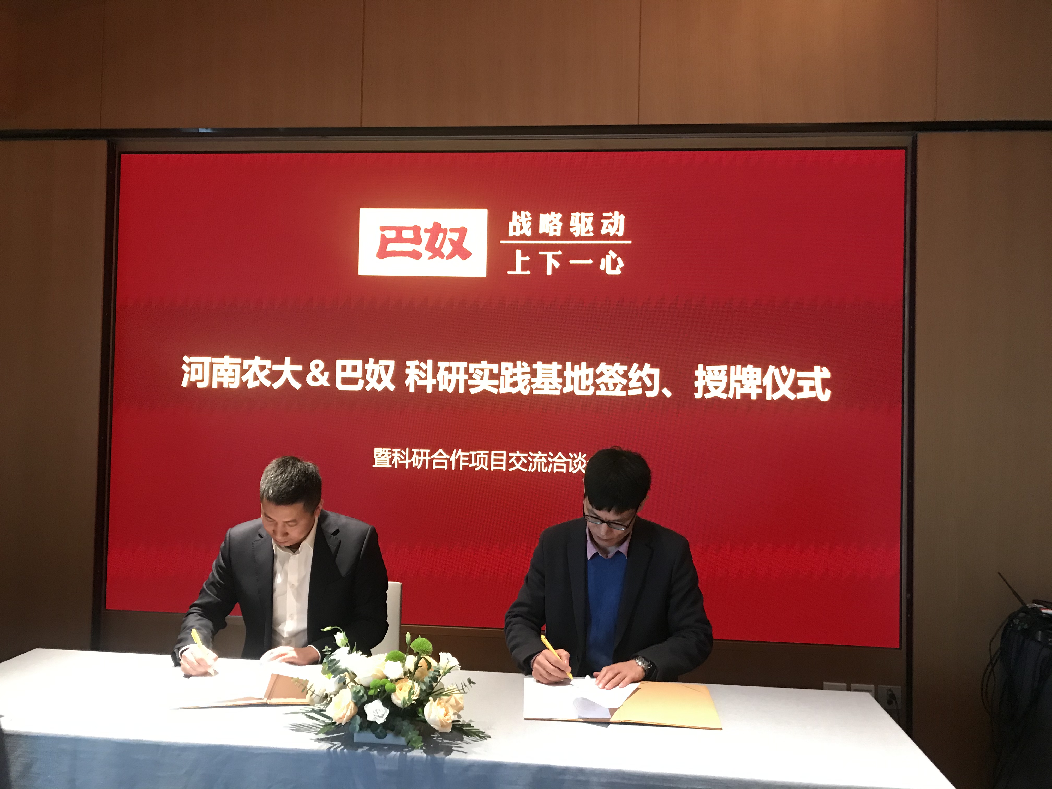 (通讯员 沈玥 李宁)2021年11月9日上午,在院长黄现青教授带领下,食品营养系主任高晓平副教授、系副主任李宁教授与李倩、闫爽、沈玥、李占超、许龙、赵培均6位博士一行9人赴巴奴集团,参加教学科研合作协议签约授牌仪式。巴奴供应链事业部总经理翟志刚、组织发展部负责人李浩、供应链事业部采购总监门文、研发工程师司志兴、中央厨经理杜文祥、管理优化经理高亚洲、组织发展部培训经理张伊杰、大学生招聘经理何玉凤出席了本次签约授牌仪式及科研合作项目交流洽谈会。会议由张伊杰主持。
