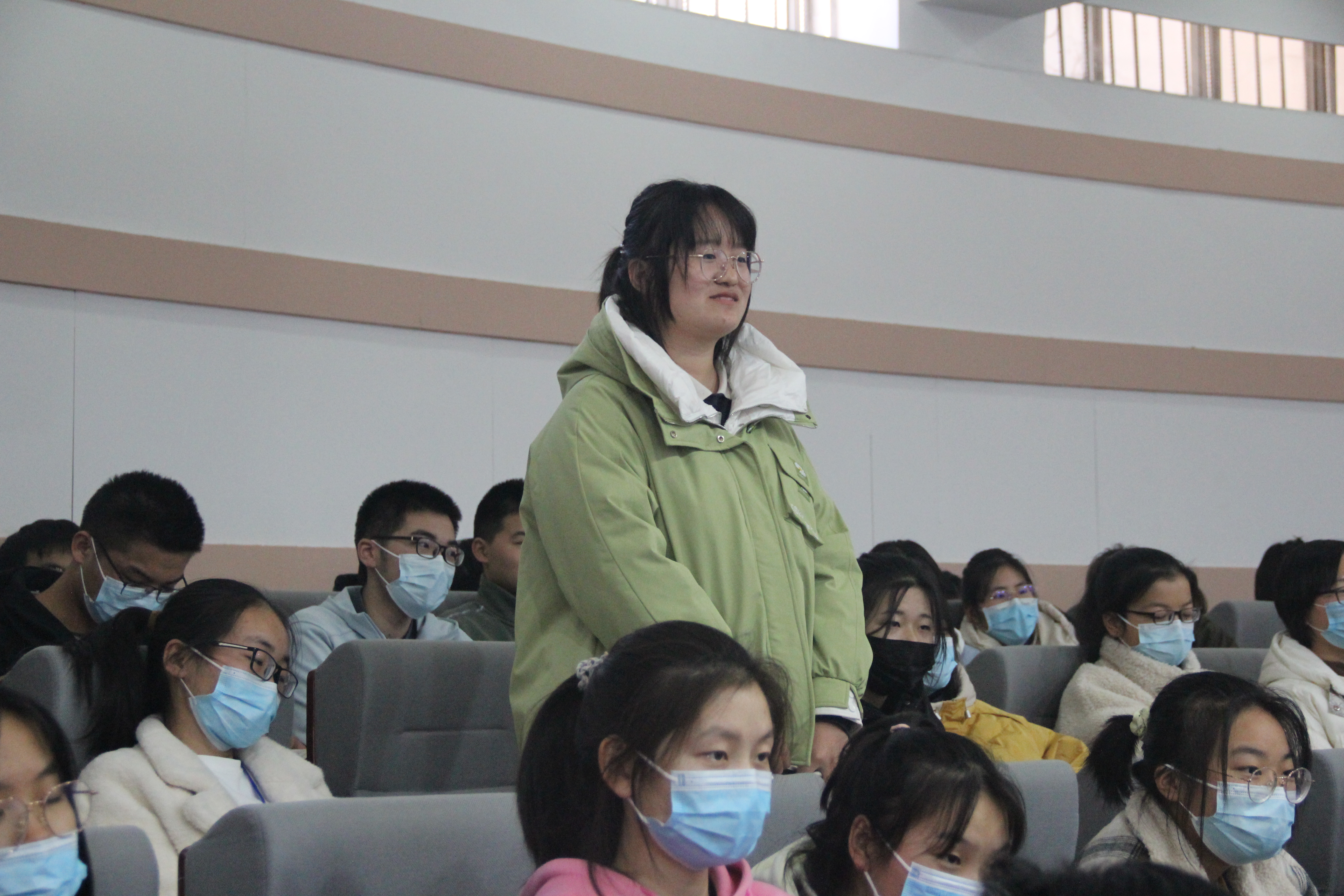 在提问环节,同学们对参军入伍表现出浓厚兴趣,积极对训练科目、学习方向和入伍途径等方面提出问题,蒋晓戈、郭雨晴对其进行了耐心的解答并鼓励有意入伍的同学积极报名参军。