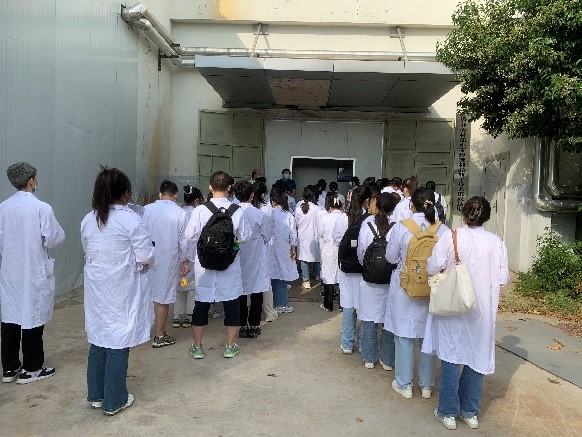 19级食工专业学生讲解中试车间各条生产线,包括鲜湿面、手抓饼、法式面包等,为学生讲解各条生产线的工艺、生产线的布局、设备等。食品工厂设计与环境保护课程组教师出席参加。