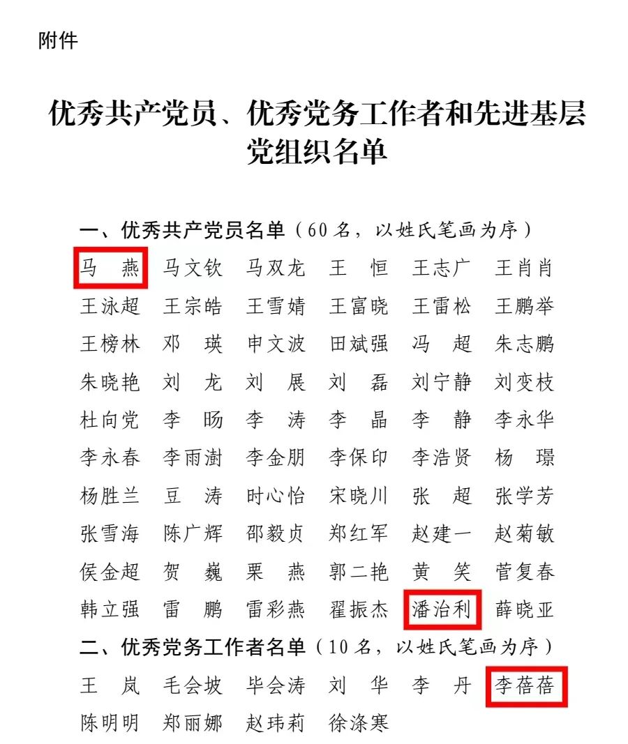 教师马燕、潘治利荣获“优秀共产党员”称号。