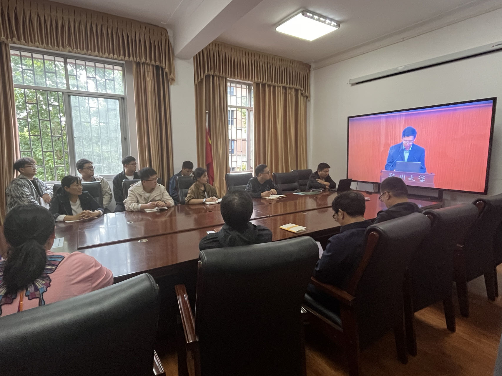 于文化路校区行政楼13号楼309会议室组织观看“河南省高校第三届暨郑州大学第四届实验室安全文化宣传月”开幕式。副院长谢新华、各课题组负责人、中心实验室全体教师和学生代表观看线上直播。
