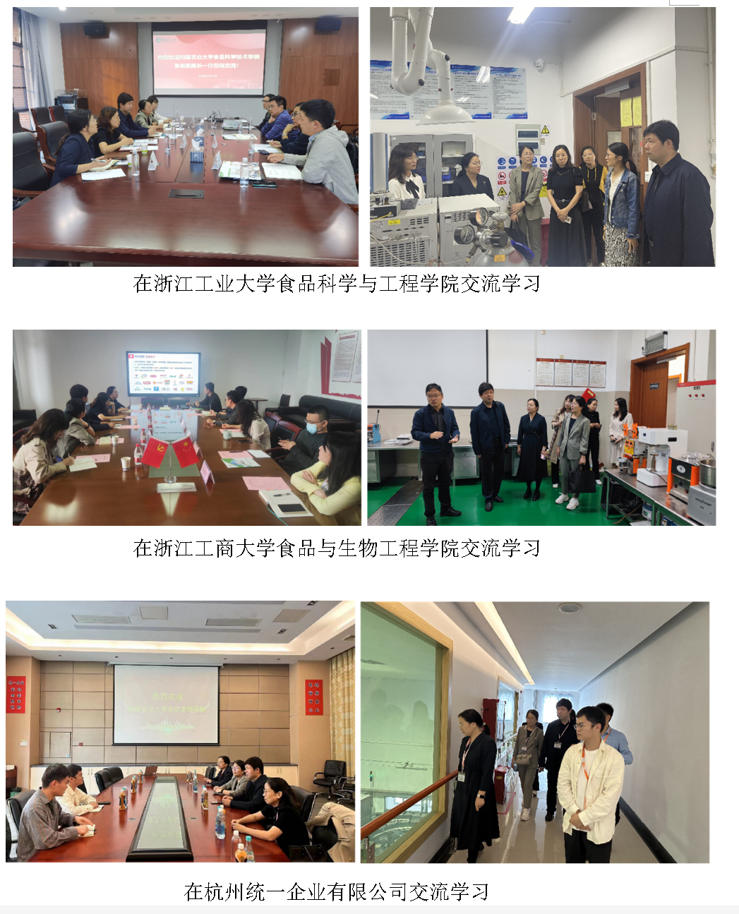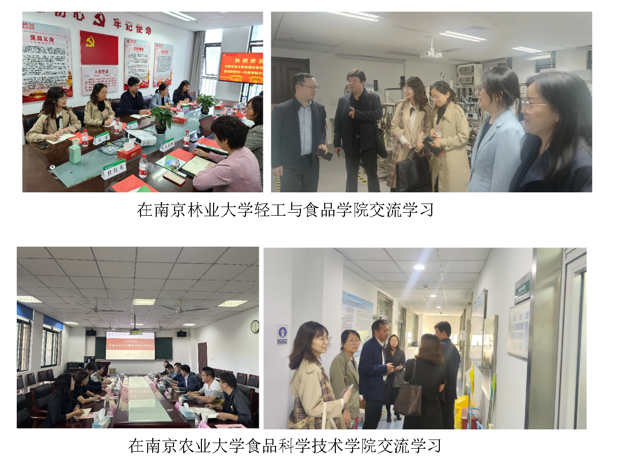 张剑等一行与兄弟院校通过会议讨论、参观实验室等方式,在招生规模、开设专业、培养方案课程体系、实践教学环节设置等方面做了深入了解,双方就教育教学、学科发展和师资队伍建设等情况进行了交流,并重点围绕食品类专业人才培养方案、工程教育认证、IFT国际认证和产教融合等进行了讨论,就存在的问题和改进方向进行了探讨。