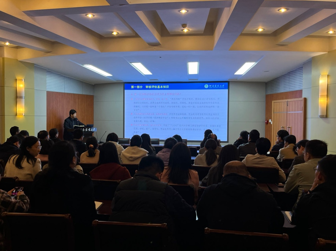 会议伊始,副院长张剑传达了本科教育教学审核评估的主要内容,包括审核评估的基本知识、学校基本情况、近期要求与注意事项三个方面,帮助全体教工深刻认识新一轮审核评估的要求。