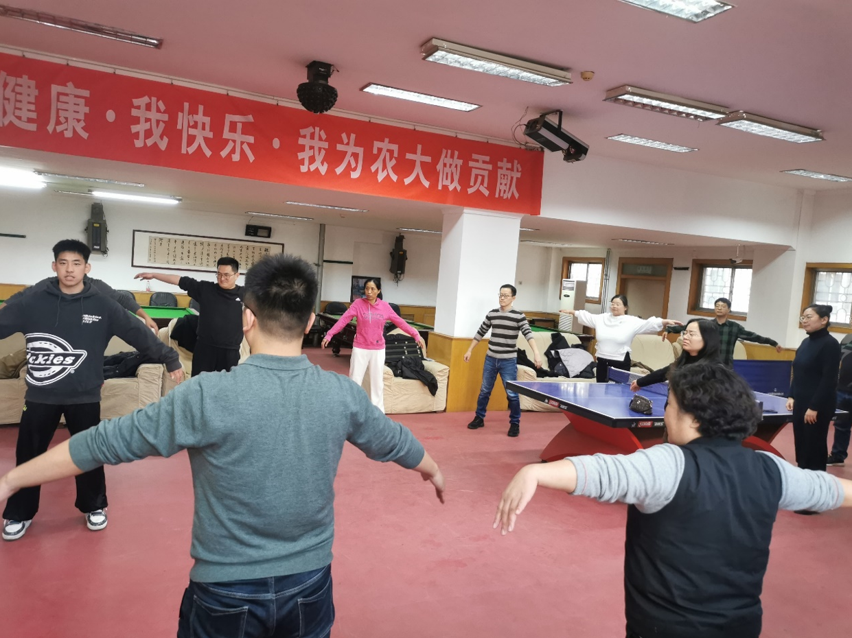 八段锦是一套独立而完整的健身功法,具有健身祛病功效。在牛老师的亲身示范和耐心指导下,大家积极地讨论动作要领,配合呼吸舒展身心,努力将动作做到完美。现场气氛轻松活跃,在相互鼓励、彼此勉励的同时,大家共同享受着紧张工作之余的放松与惬意。教职工们纷纷表示,本次活动能够帮助其舒展身心,缓解压力,增强锻炼意识,使自身能够以更加饱满的热情、更健康的身体投入到生活与工作中去。