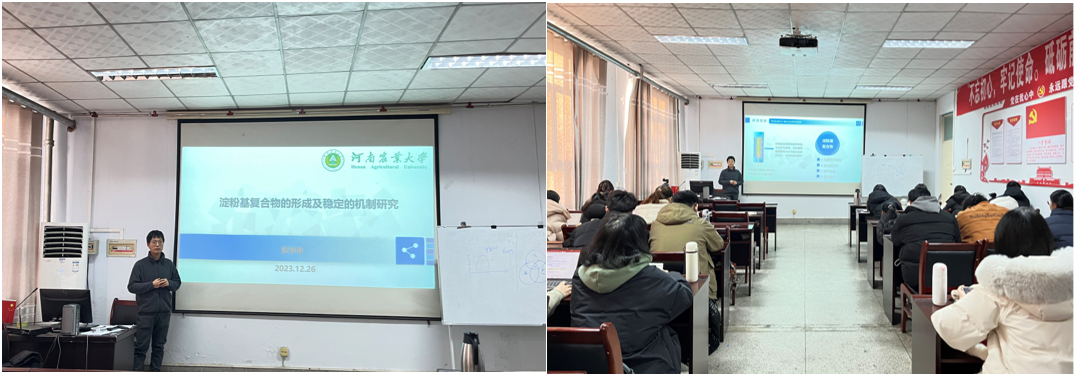 程李琳博士详细讲解了淀粉基复合物的形成及稳定的机制研究,其中介绍了常见的淀粉基复合物,以及对玉米淀粉-亚油酸复合物的性质研究等,包括研究其物理性质、化学性质以及在食品加工等方面的应用。程李琳博士的研究内容和方法为在场研究生提供科研思路与指导。
