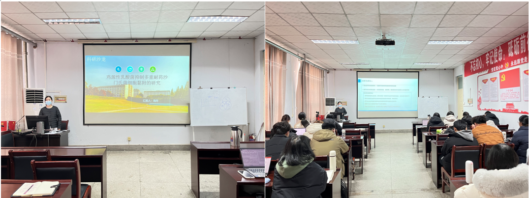 海丹博士通过乳酸菌抑制沙门氏菌研究现状、鸡源性乳酸菌表层蛋白拮抗沙门氏菌粘附机制的研究、鸡源性乳酸菌体内拮抗沙门氏菌粘附机制的研究以及其实验技术路线等多方面深入讲解了鸡源性乳酸菌抑制多重耐药沙门氏菌细胞粘附的研究。海丹博士在讲解过程中条理清晰,图文并茂,令同学们获益匪浅。