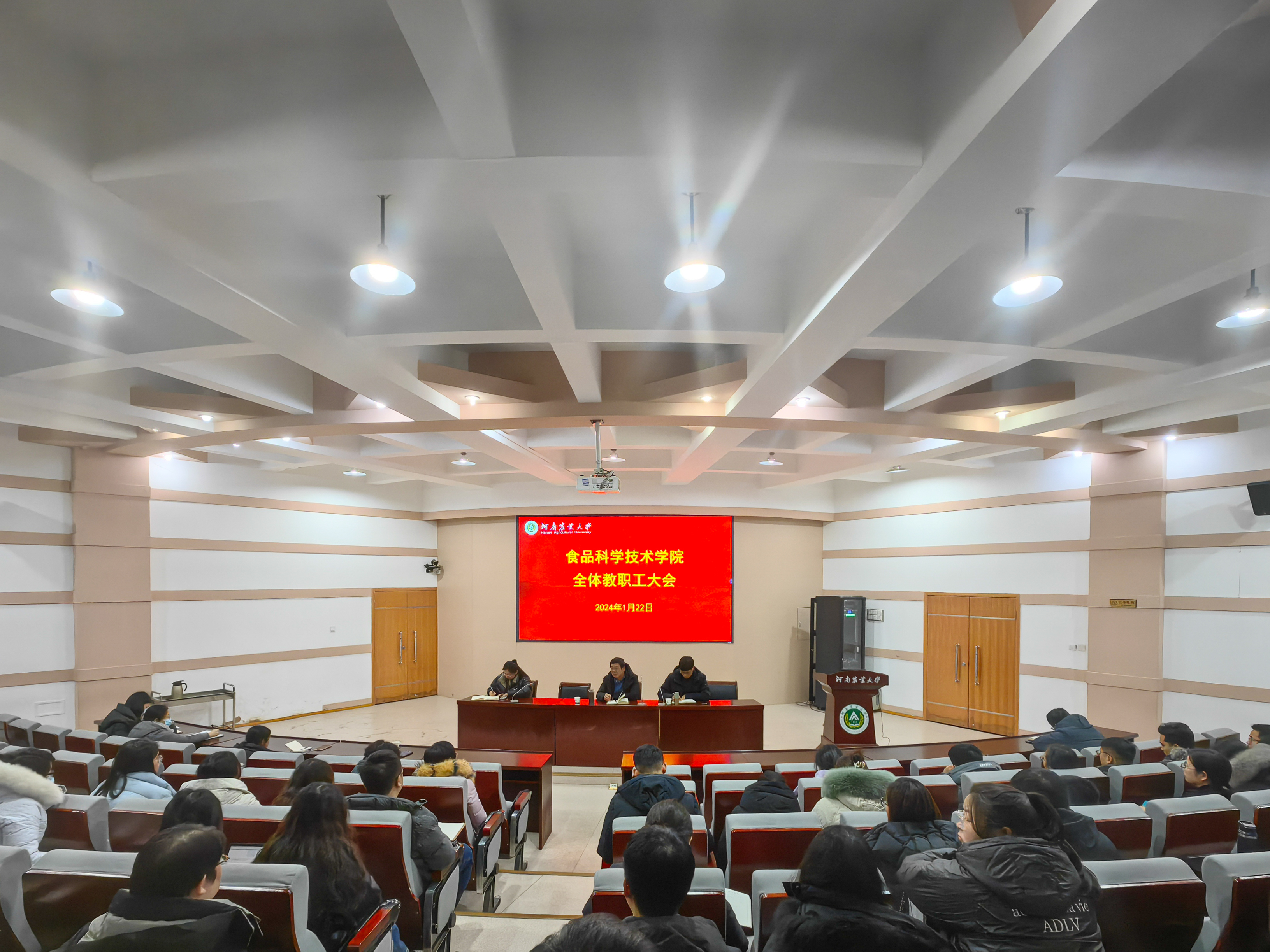 在全院教职工大会上,副书记李蓓蓓传达了学校安全工作会议的核心内容,详述了学院在校园消防安全、用水用电安全、实验室安全以及学生宿舍安全等方面所展开的工作,同时要求教职工做好假期内学生去向登记以及校园安全排查,保证大家过一个欢乐祥和的新春佳节。院长黄现青再次对青年教师进行了鼓励,并在教学和科研领域给出了意见和建议。对于学院课程建设、教学质量提升、国家基金申请、博士点申报等方面,黄院长也做出了详细的要求和规划。院党委书记赵改名对大会进行了总结发言并提出了殷切希望:首先是既要志存高远,又要脚踏实地,合理设计科研计划和目标。其次是要自觉增强学科建设的紧迫感和使命感。