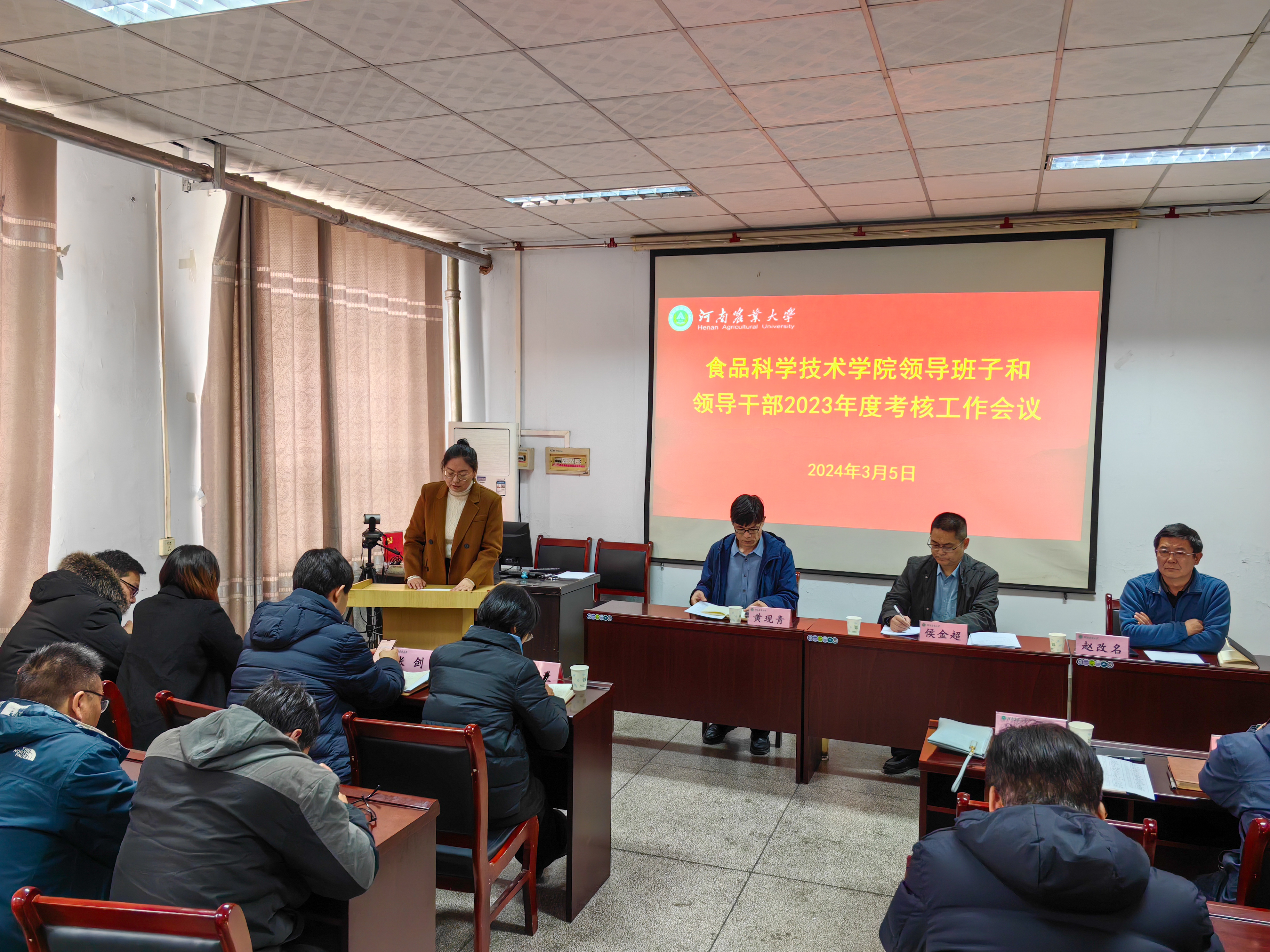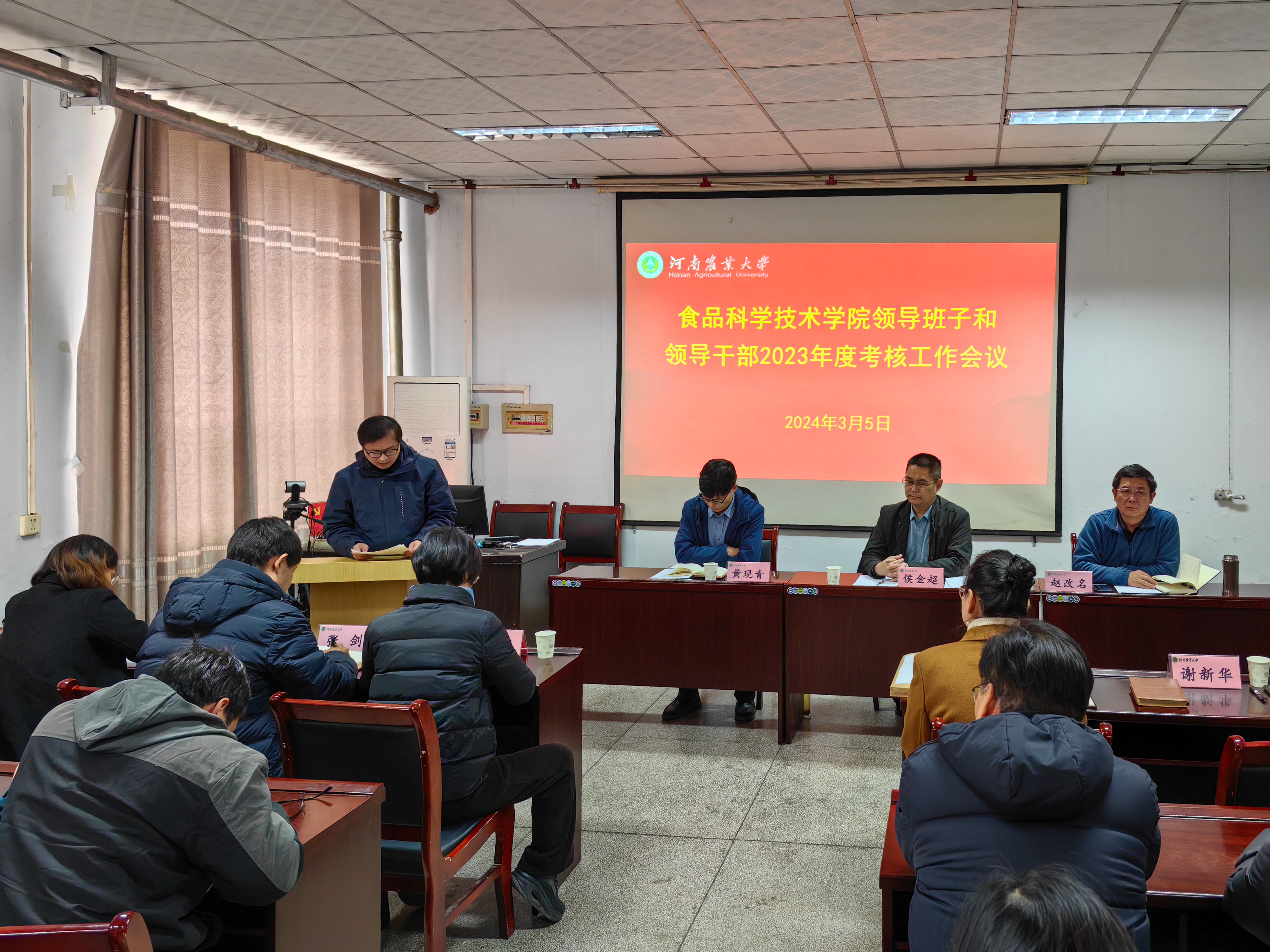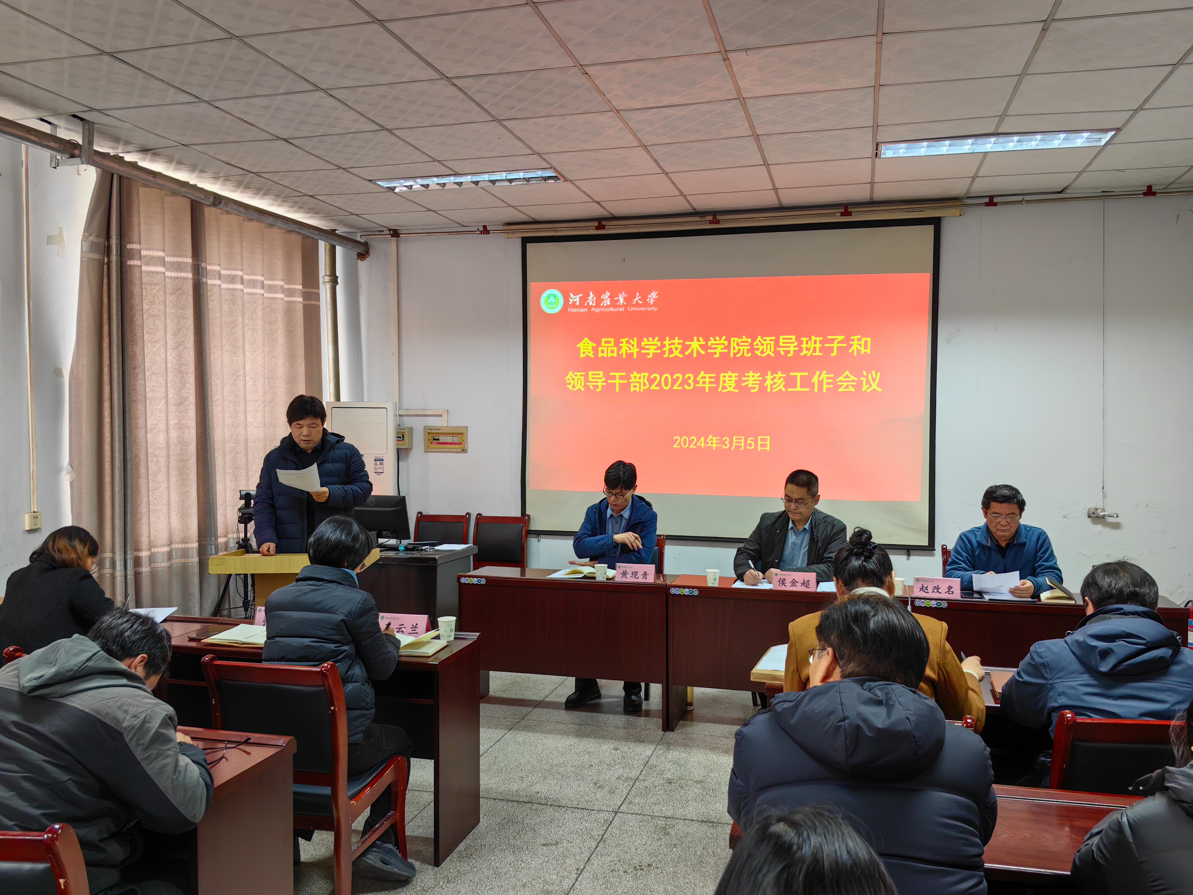 在文化路校区17号楼405报告厅召开领导班子和领导干部2023年考核工作会议。校工会副主席侯金超代表学校考核组出席会议,院领导班子成员及全体教职工参加了会议,会议由院党委书记赵改名主持。