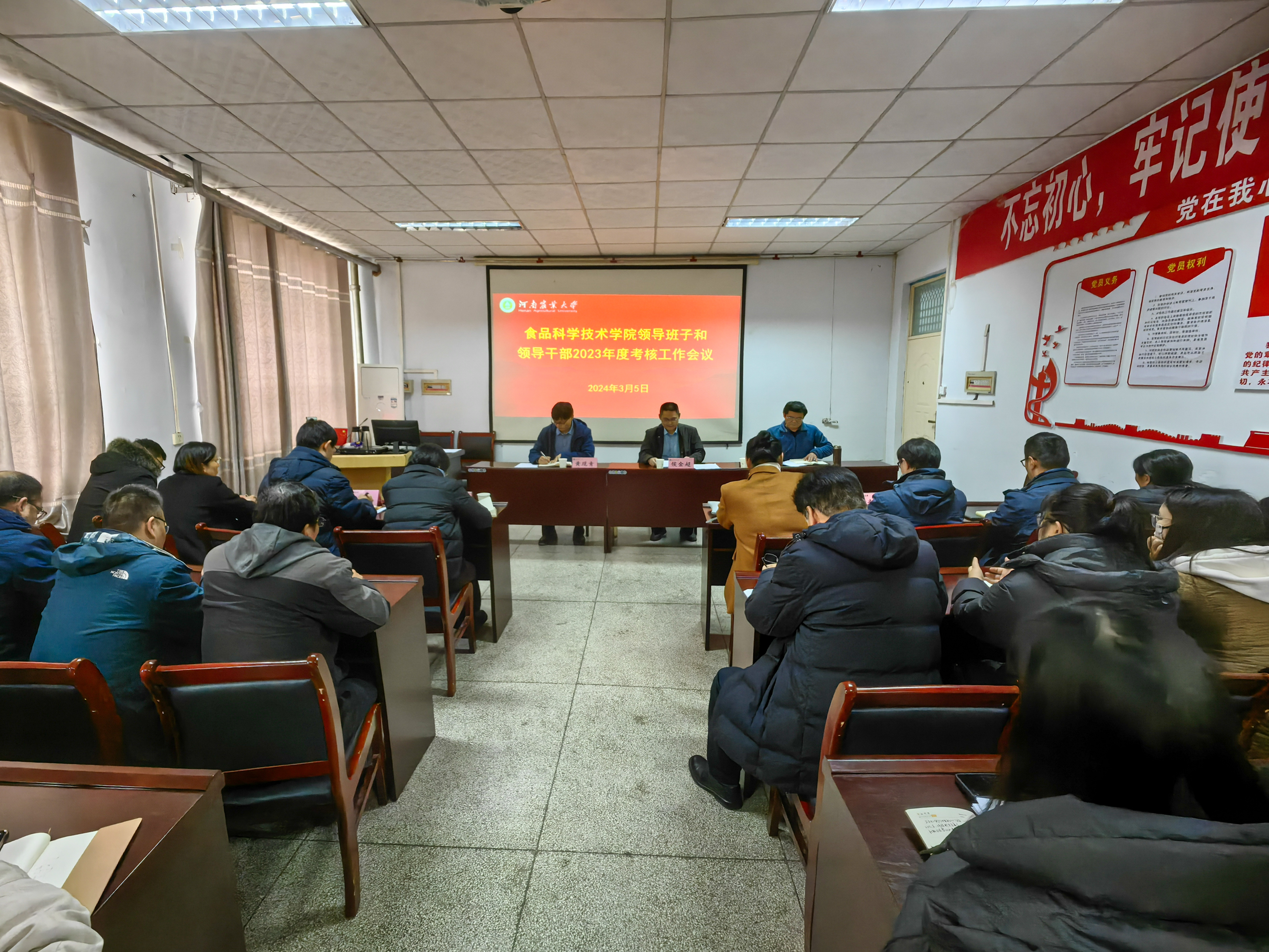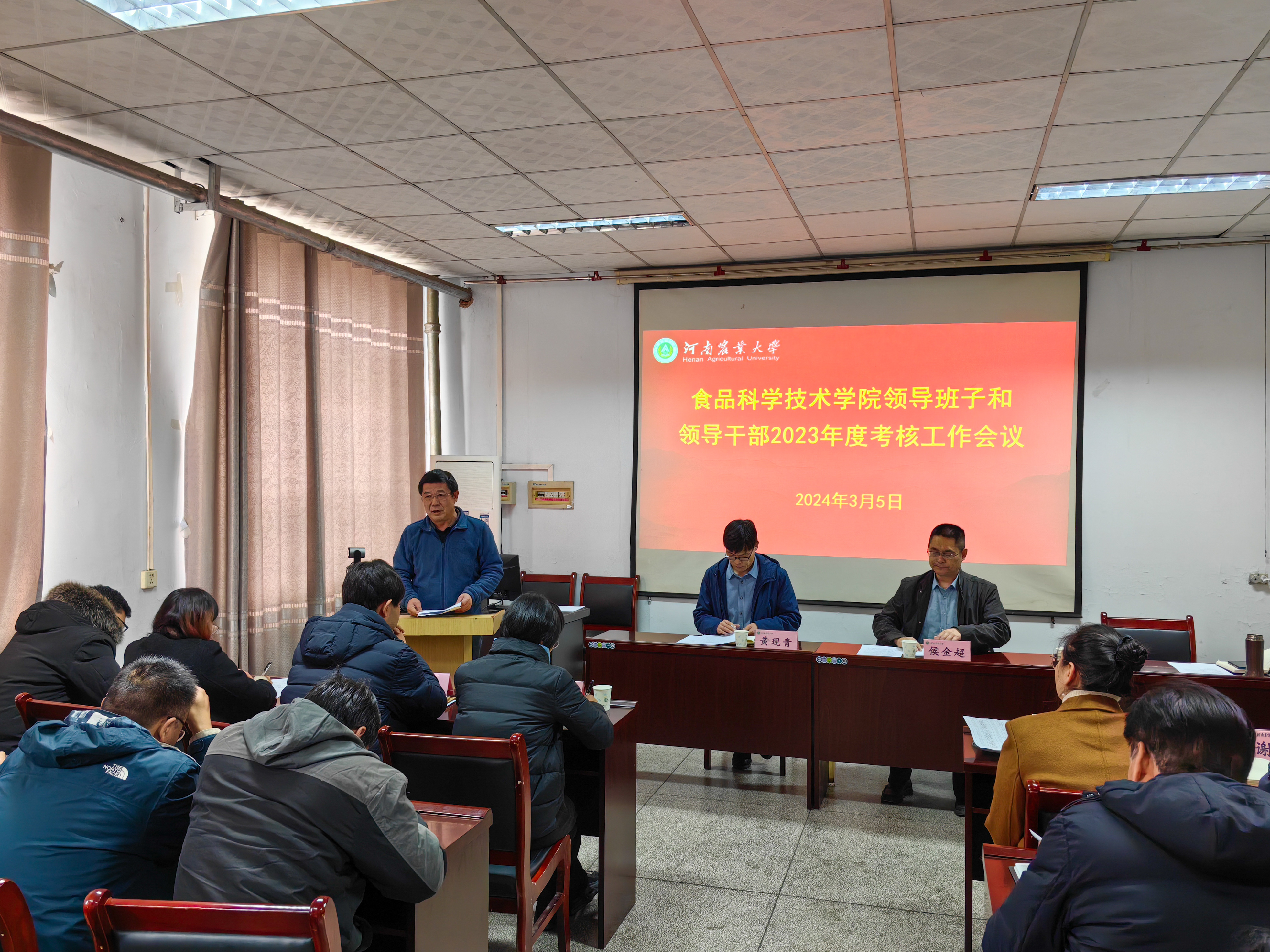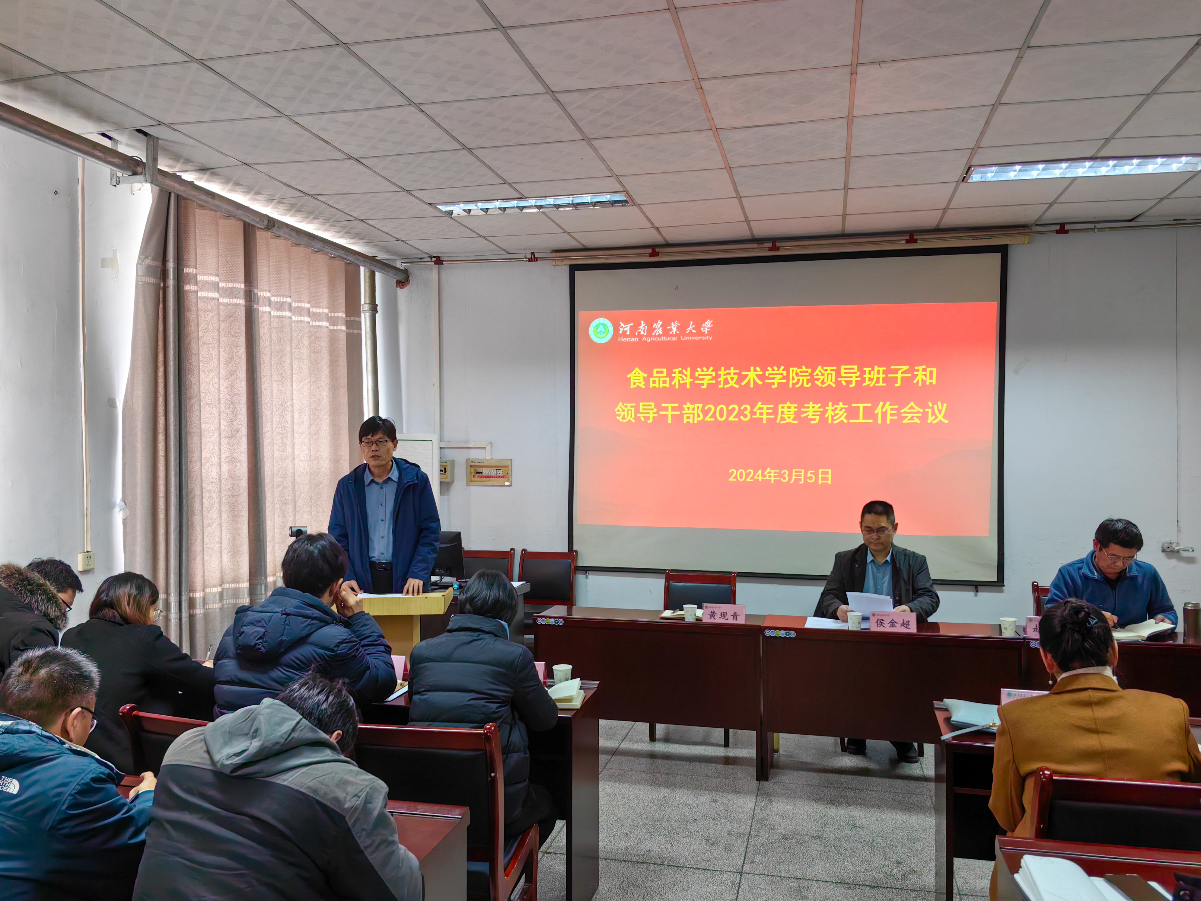 在文化路校区17号楼405报告厅召开领导班子和领导干部2023年考核工作会议。校工会副主席侯金超代表学校考核组出席会议,院领导班子成员及全体教职工参加了会议,会议由院党委书记赵改名主持。