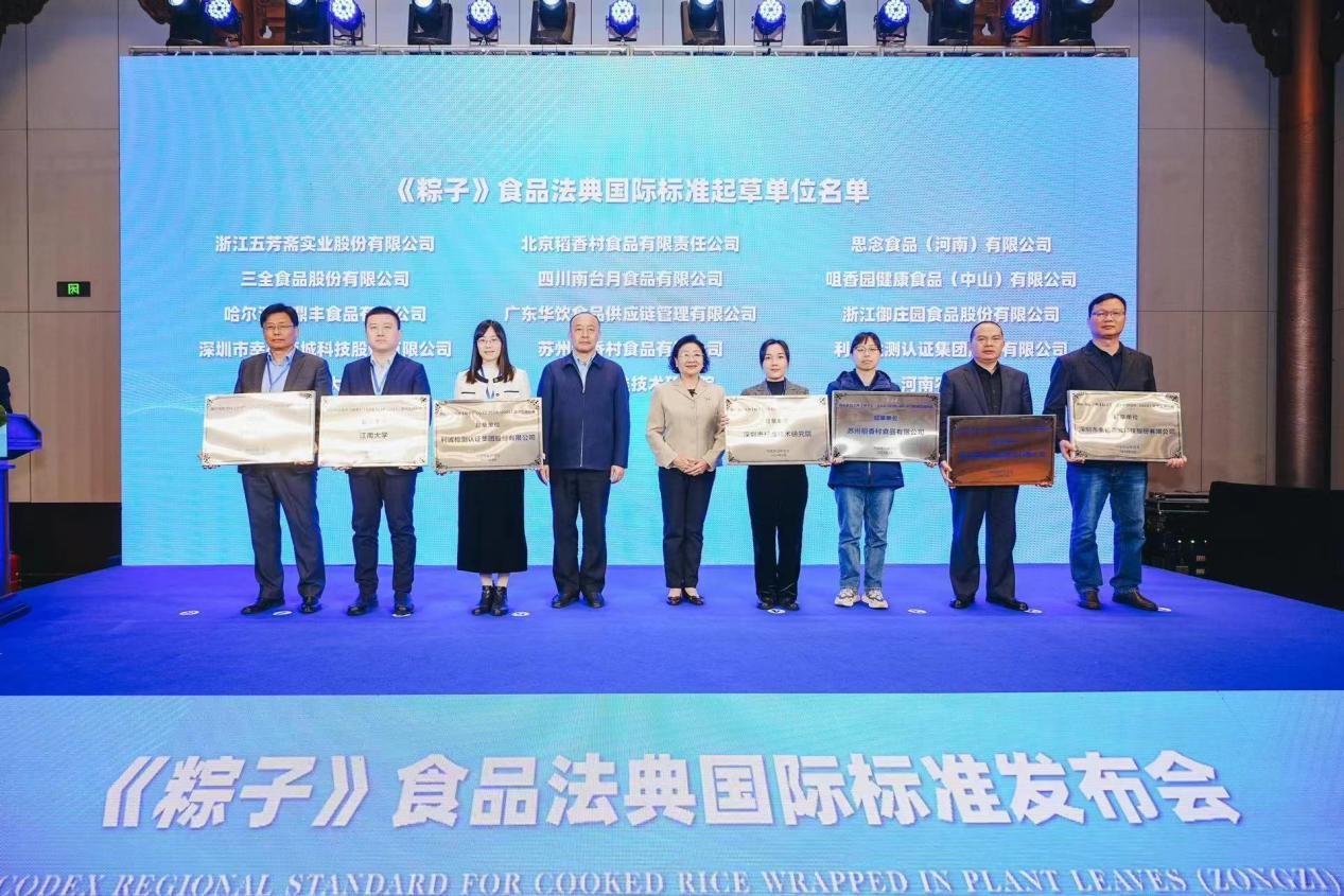 《粽子》食品法典国际标准是我国在国际食品法典委员会(CAC)提出并主导组织制定的中国传统食品国际标准,于2023年12月在联合国粮农组织和世界卫生组织共同举办的国际食品法典委员会第46届会议上正式获批发布,标准代号为CXS 355R-2023。商务部流通业发展司副司长赵涛、国家食品安全评估中心副主任樊永祥、农业农村部农产品质量安全中心总农艺师孔巍、中国商业联合会副会长张丽君等有关领导以及来自五芳斋、北京稻香村、哈尔滨老鼎丰、思念食品、三全食品等企业及亚洲色吧 、江南大学起草单位的代表参加了本次发布会,亚洲色吧 二级教授、中国食品工业协会粽子行业委员会专家委员黄忠民全程参与了该项国际标准的起草工作并共同见证全球首个中国传统节令食品国际标准的发布。