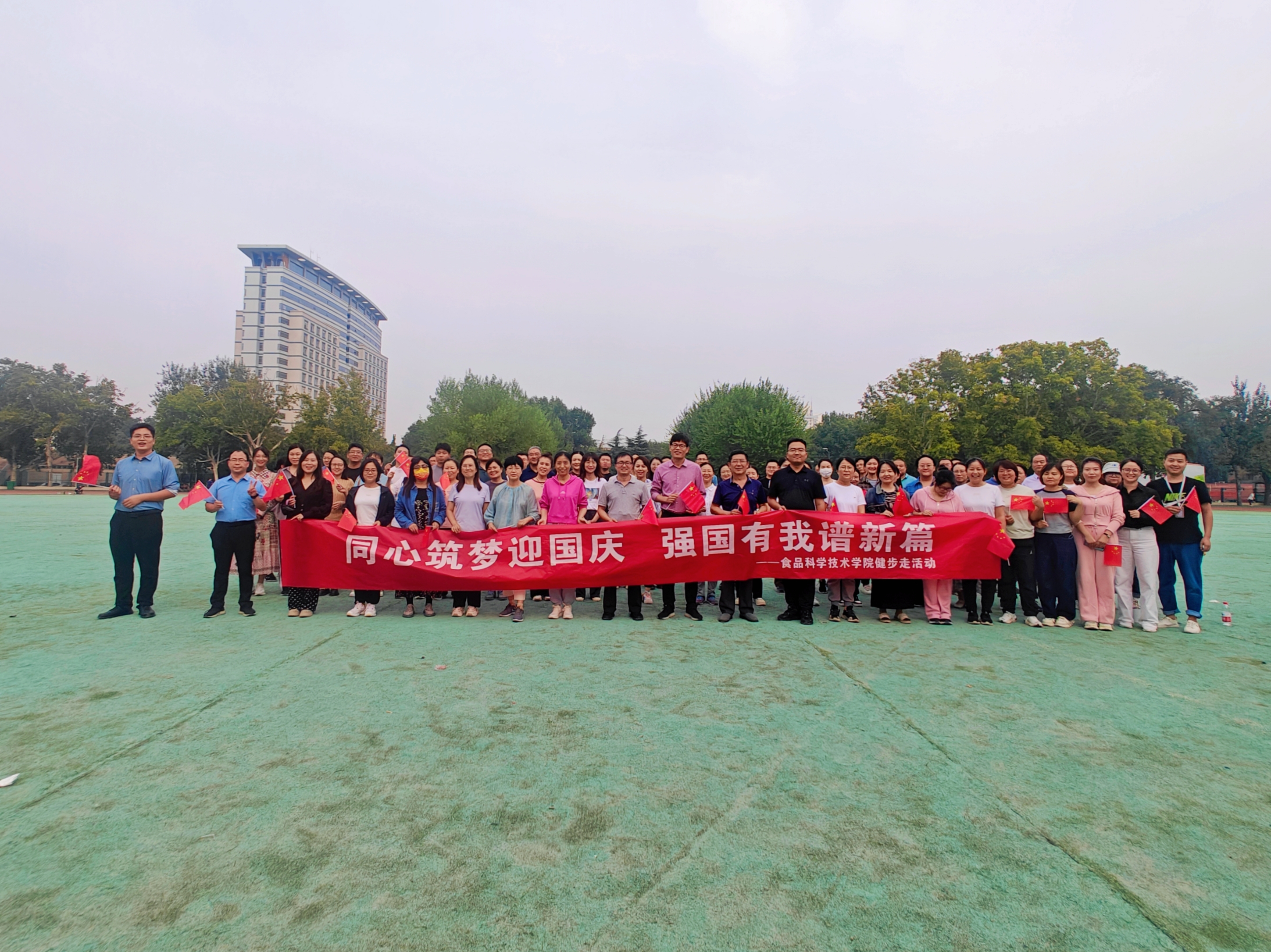 于近日在文化路校区操场举办了以“同心筑梦迎国庆,强国有我谱新篇”为主题的健步走活动。此次活动吸引了众多老师的参与,大家在凉爽的秋风里,共同迈出了一步,展现了积极向上的精神风貌。