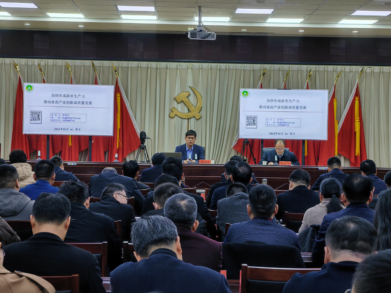 (通讯员 闫科润 马燕)11月27日,受漯河市郾城区区委区政府邀请,亚洲色吧 院长黄现青教授赴漯河市为郾城区政府做题为“加快形成新质生产力 推动食品产业创新高质量发展”专题报告会。郾城区区委区政府、组织部、人大、区农业农村部门、区科技部门、下属各街道、镇负责人及全区规模以上食品工业企业管理人员和技术骨干100余人参加报告会。