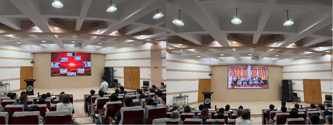 三段精心制作的祝福视频将现场气氛推向感人高潮。视频中,一张张泛黄的老照片串联起黄忠民、李梦琴、邵建峰三位老师数十载躬耕教坛的珍贵瞬间——或是在实验室专注指导学生实验,或是在讲台上神采飞扬授课,或是带领团队攻坚克难。画面流转间,穿插着来自昔日同事、历届学生以及在校师生的深情祝福视频。一声声“谢谢您”、“辛苦了”、“祝您健康幸福”,一句句饱含敬意的回忆与感恩,如涓涓细流汇聚成温暖的情感长河,深深触动着在场每一位师生的心弦。