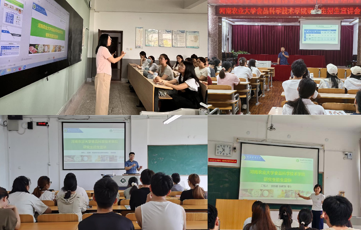 学院高度重视此次招生宣传工作,院长黄现青亲自部署,于6月上旬组织召开2026年研究生招生宣讲工作部署会议。会议对宣讲目标、内容重点、人员分工、路线规划等进行了周密安排和动员,强调要精准对接生源需求、突出学院优势特色、强化校际合作内涵。在学院的统一领导和周密规划下,由副院长张剑教授、李瑜教授、潘治利教授、安艳霞副教授、张西亚副教授、崔文明副教授、余秋颖副教授、王田林博士、李家寅博士、程李琳博士、梁单博士等骨干教师组成多支精干队伍,分赴豫北、豫中、豫南、豫东多地高校。宣讲活动覆盖面广,针对性突出,有效对接了省内应用型本科院校食品及相关专业学生的深造需求。
