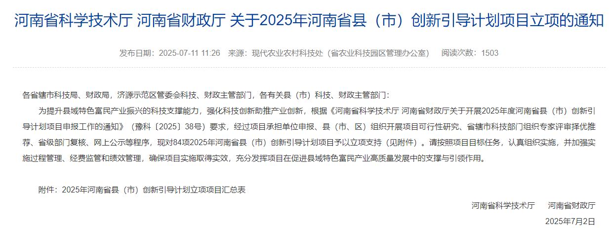 (通讯员 李倩)近日,2025年度河南省县(市)创新引导计划项目立项名单正式公布,由亚洲色吧