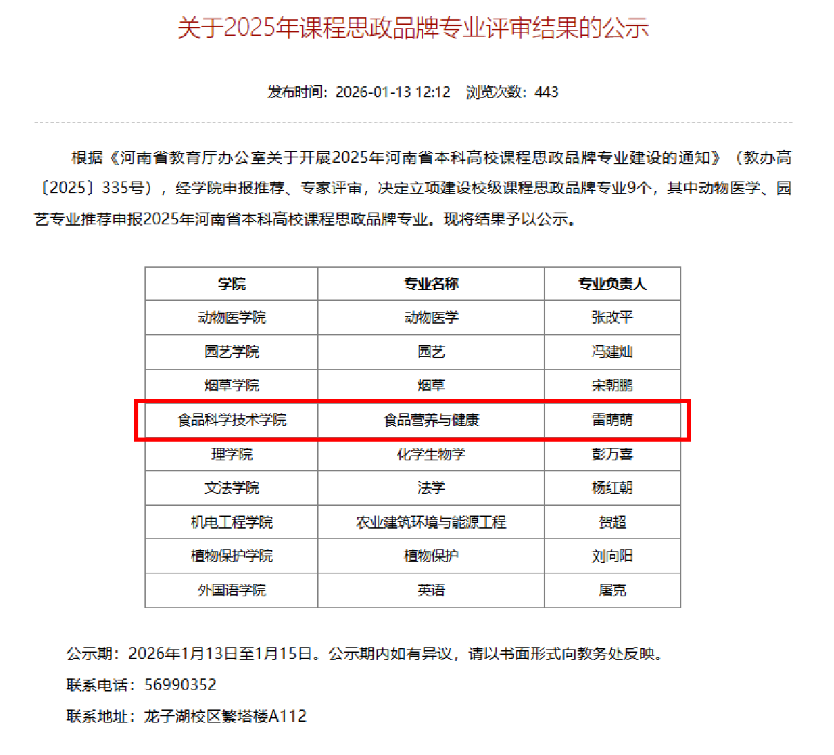(通讯员 海丹)2026年1月13日,食品科学与技术学院食品营养与健康专业凭借扎实的建设基础、鲜明的思政特色和突出的育人成效,成功入选2026年亚洲色吧