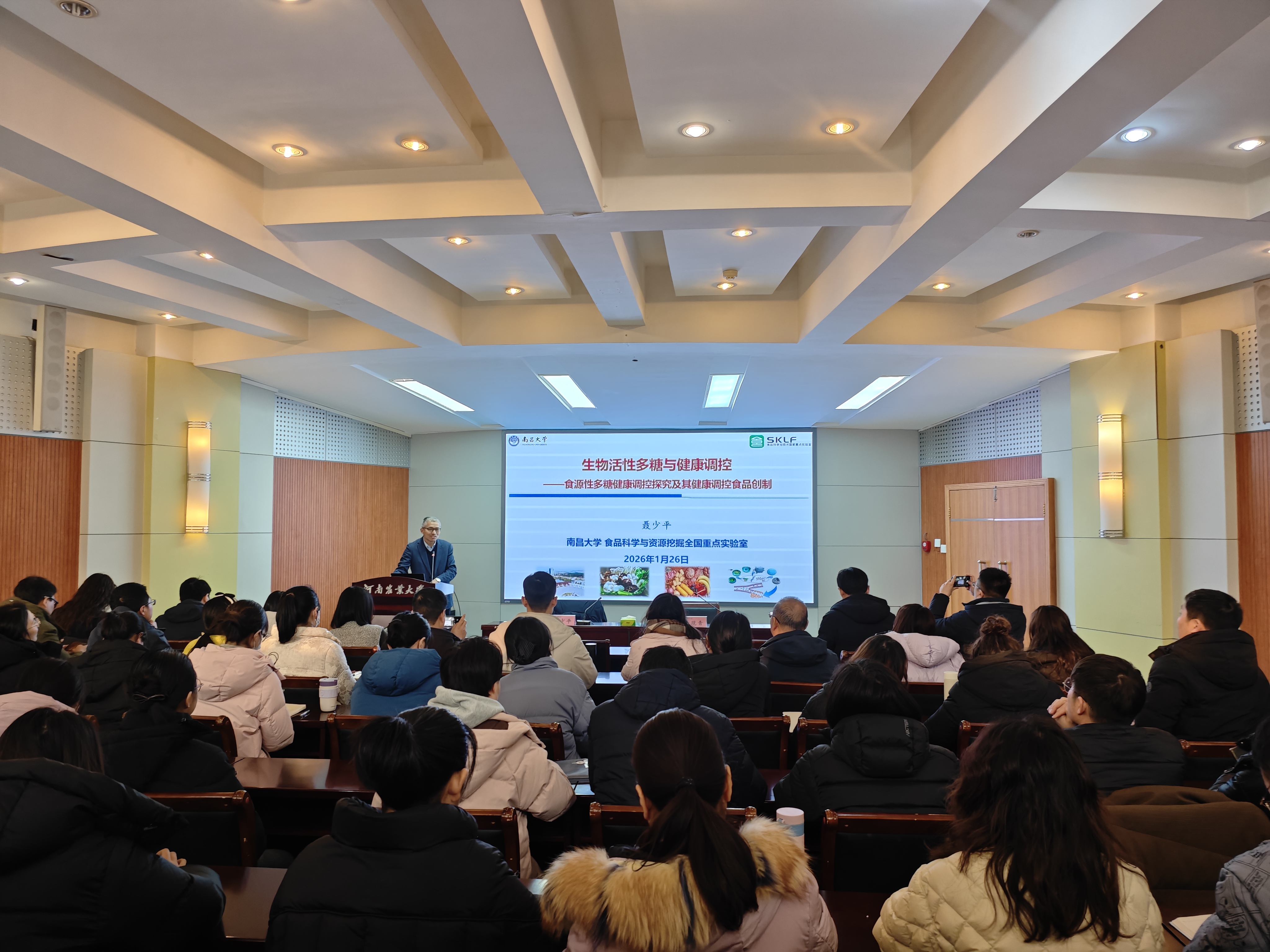 ,在文化路校区100人报告厅作了题为《食源性多糖健康调控探究及其健康调控食品创制》的学术报告。报告会由院长黄现青主持,学院全体教职工及在校研究生到场聆听。