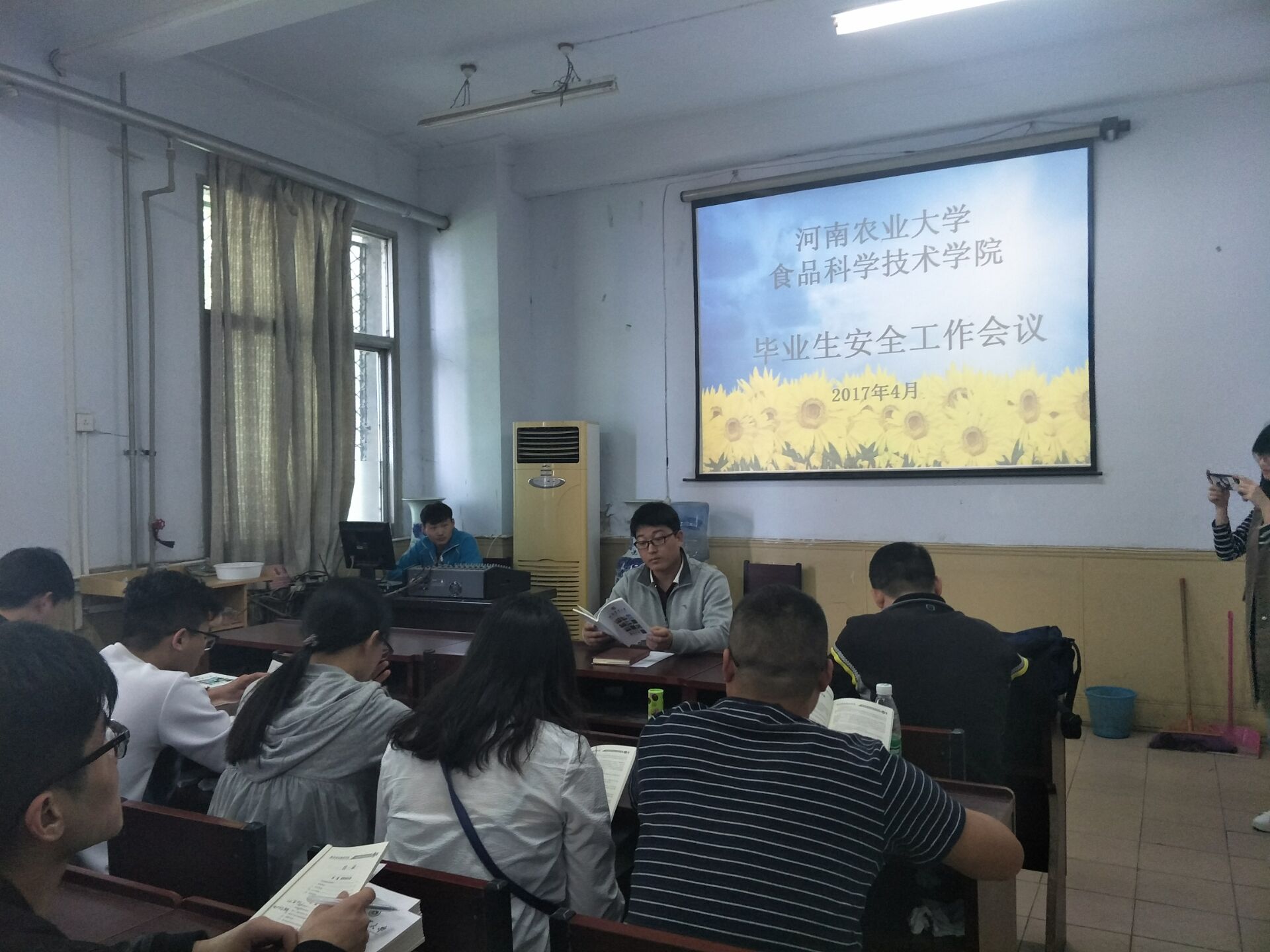 在一号楼报告厅召开毕业生安全工作会议,院团委书记李蓓蓓、院团委副书记杨光、院党委组织员张世昌、院辅导员孟子晴出席会议,学院毕业生代表参加此次会议。
