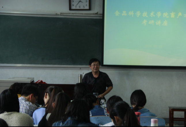 在文化路校区三号楼305教室举办畜产方向考研讲座。学院院长赵改名,院畜产研究组负责人李苗云出席讲座,2013级、2014级本科生代表及2016级研究生代表参加讲座。赵改名担任主讲。