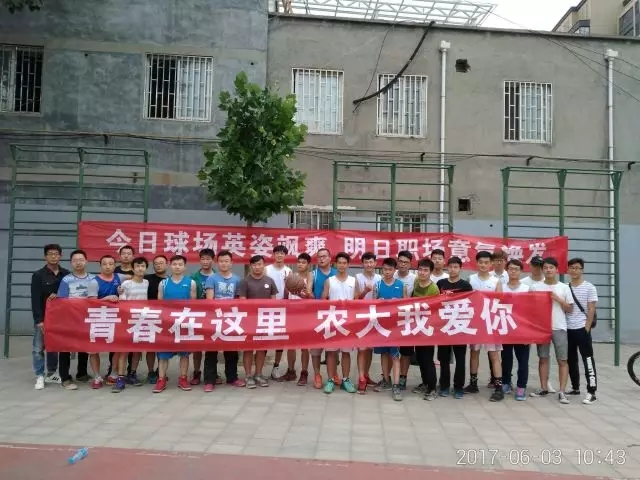 比赛前,拉拉队带来的一个活力四射的开场舞《sugar》,拉开了本次篮球赛的序幕。赛场上,球员们积极发扬团结协作精神,全力以赴大学生涯的最后一次友谊赛,彼此既是对手又是兄弟,他们斗志昂扬,奋力拼搏,每一次进球、传球都牵动着大家的神经,引起观众连连的喝彩和欢呼。经过激烈的对抗和角逐,毕业生代表队以一分险胜其他年级代表队,获得本次比赛的胜利。比赛结束后,他们互相拥抱致意,交流经验,并纷纷在“青春在这里,农大我爱你”横幅上签字,留下自己对母校的期许与不舍,最后与在场的工作人员一起合影留念,记录这一精彩瞬间。