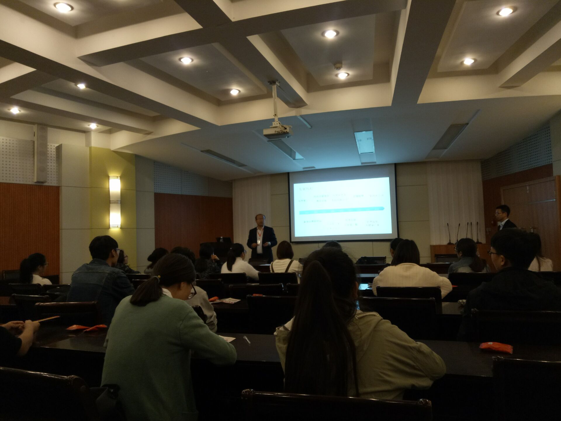 本次招聘会首先由好想你公司人力资源部招聘培训负责人以PPT的形式向在场学生展开讲解,表明作为一家集红枣种植加工、冷藏保鲜、科技研发、贸易出口、观光旅游为一体的综合型企业,好想你立足大健康产业,传递“健康、时尚、快乐”的品牌理念,致力于打造营养膳食体系,为消费者提供高标准、科学配比的健康食养标准。接着,负责人介绍到公司的基本信息以及获得荣誉,20多年来好想你专注红枣产业,已经发展成为品质红枣的代名词,并且塑造了极富温情的品牌形象,具备极高的消费者认同。最后,由人力资源与业务部门负责人组成的专业招聘团队,在宣讲会现场为大家解答问题,还进行了“一对一”沟通,让在场学生更客观地了解好想你。