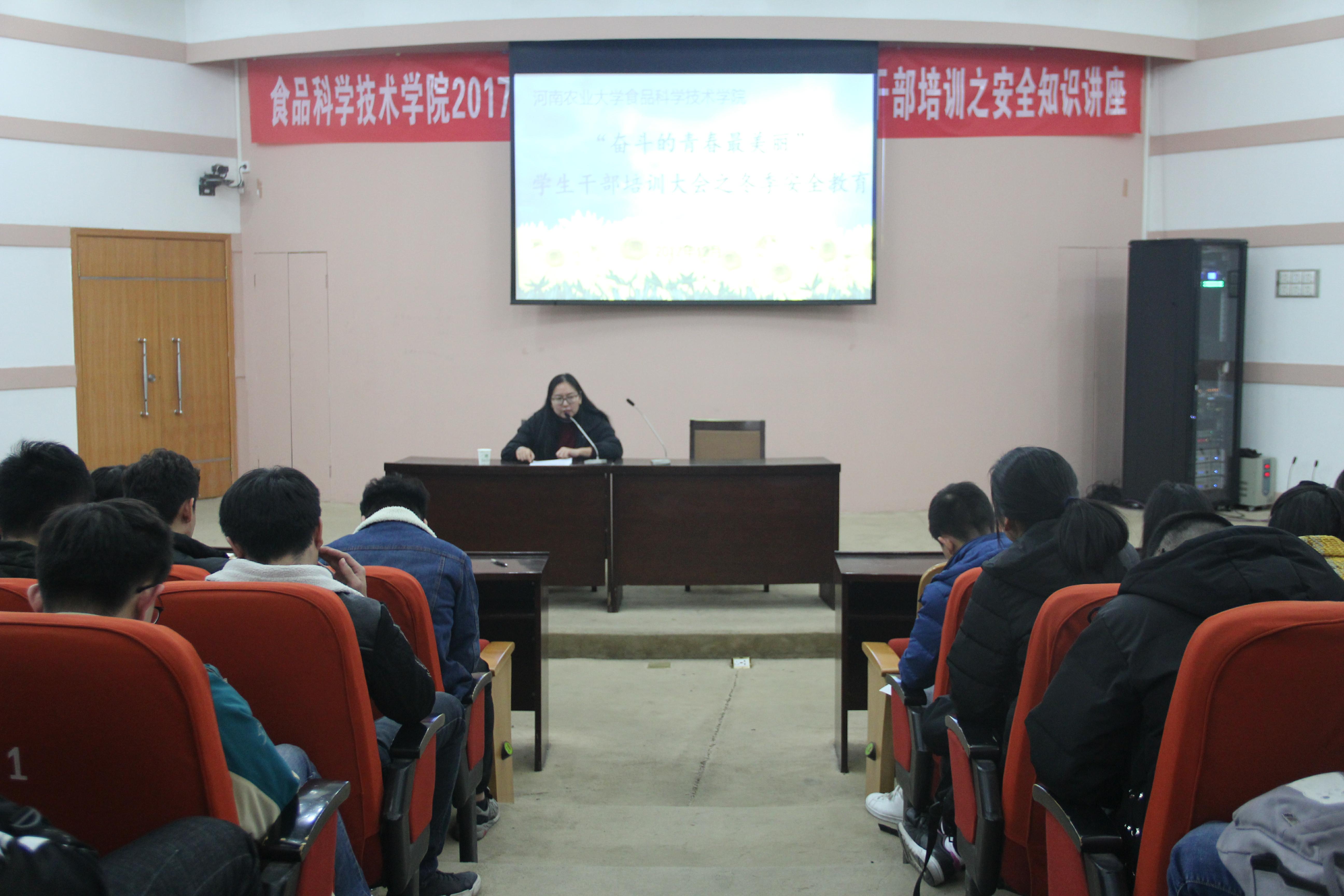 在文化路校区300人报告厅举办冬季安全知识会议,院团委书记李蓓蓓出席会议,学院全体学生干部参加会议。