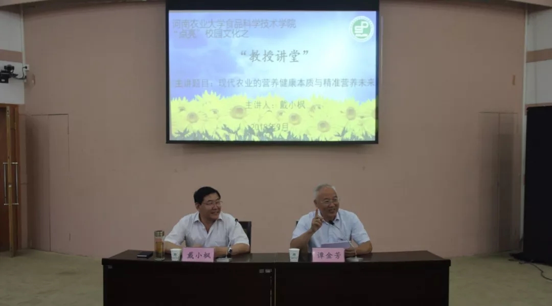 “点亮”校园文化之“教授讲堂”。学院特别邀请了中国农业科学院农产品加工研究所所长,国家农业科技创新工程创新团队首席科学家戴小枫所长为学院师生作以“现代农业的营养健康本质与精准营养未来”为题的学术报告。院长赵改名、相关专业教师及学院本科生、研究生代表参加聆听了本次报告会。此次报告会由副校长谭金芳主持。